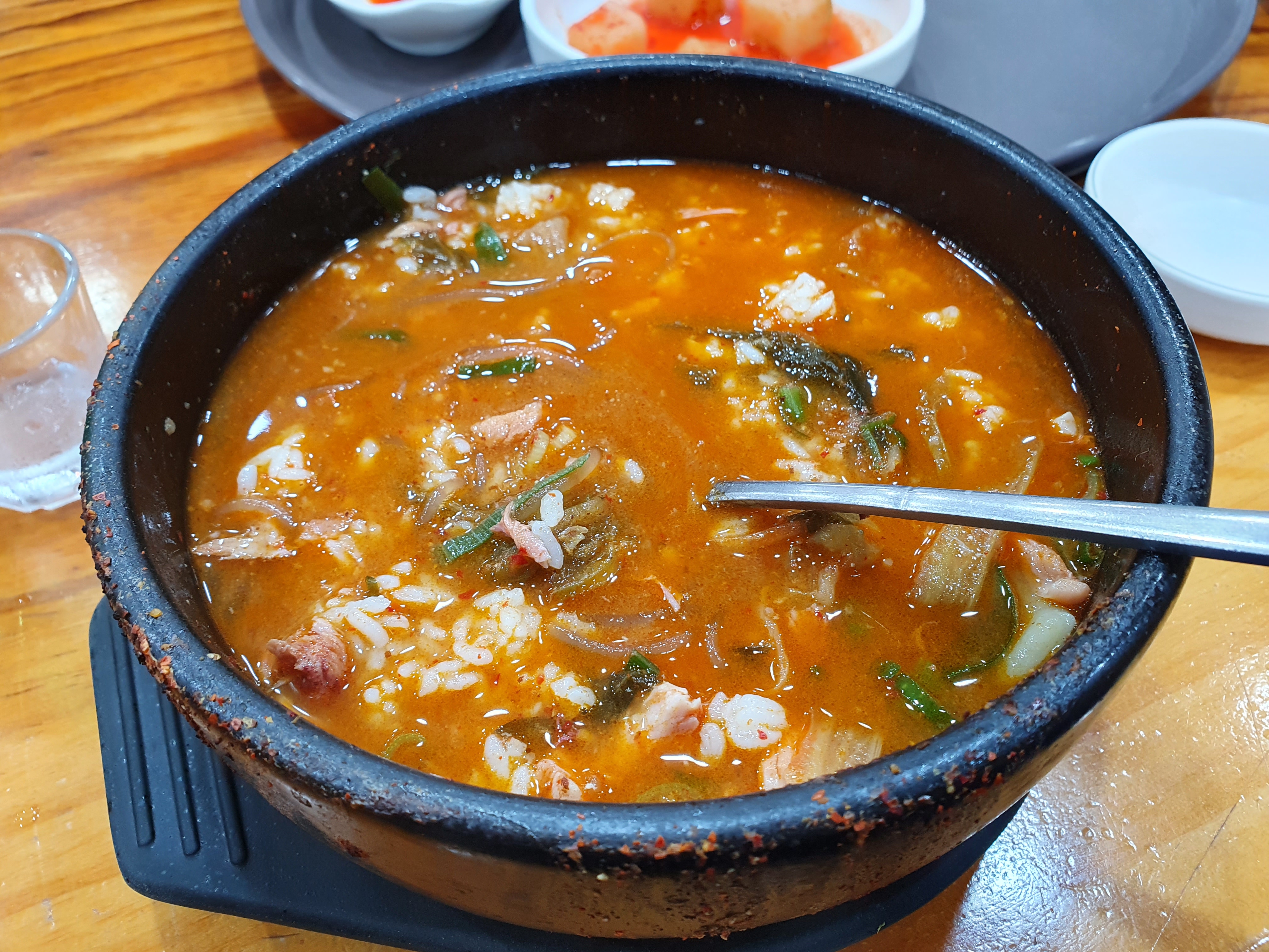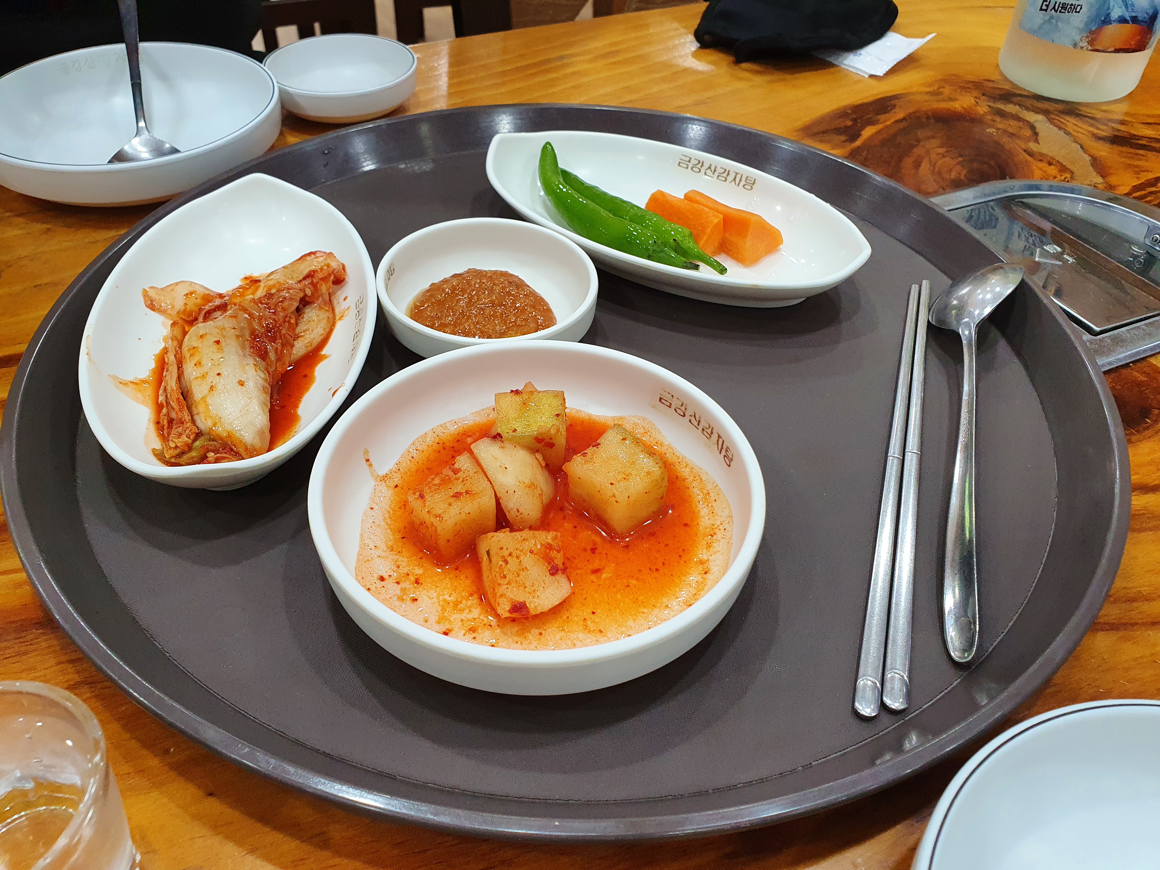 찬은 보통입니다. 김치랑 깍두기 고추 당근 이렇게 간단하게 나오며 더 필요하면 주인분을 부르시지 마시고 셀프로 떠다가 드시는 것을 추천을 드립니다. 혼자 하시는 경우가 많이 있기 때문에 바빠 보이시더라구요. 의정부 용현동은 큰 동네가 아니라서 그런지 혼자서 하시는 가게가 대부분입니다.