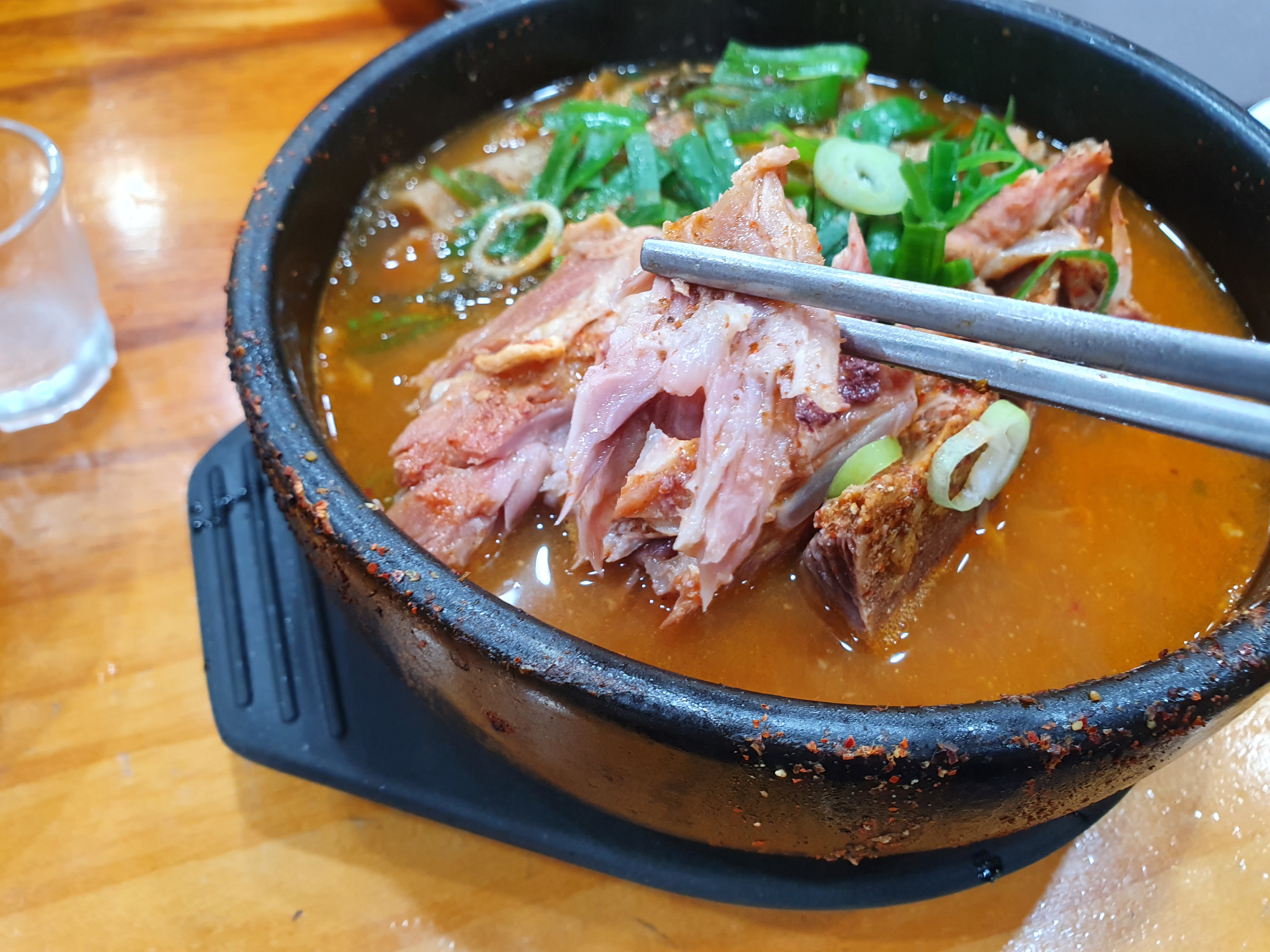 제가 뼈해장국을 상당히 좋아하는 사람으로써 제 취향은 언제나 고기부터 다 뜯고 남은 국물에 밥을 말아먹는 것을 좋아합니다. 동시에 먹는 것보다는 고기의 맛을 먼저 우선시 하게 생각을 하기 때문에 먼저 먹는 것을 선호하는데요. 이 가격에 이정도 고기라면 충분하게 만족습럽습니다. 뻣뻣하지도 않고 국물맛고 고소한 편에 속합니다. 대신 가격이 다시 돌아간다면.... 좀 아쉽긴 할 것 같습니다.