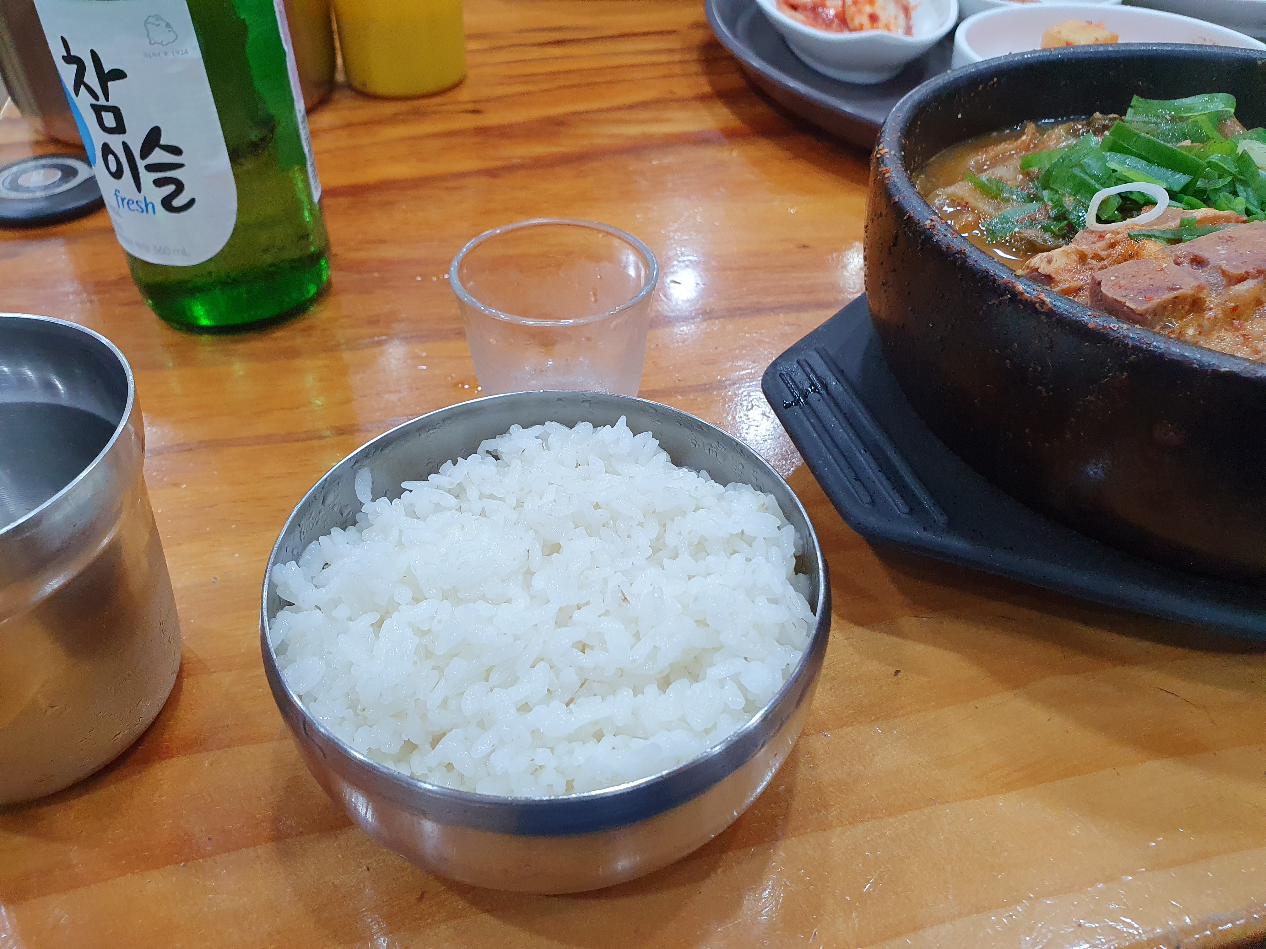 흰쌀밥도 같이 나오고 소주 한잔 안할 수 없겠죠 무심코 한잔 준비를 해봅니다. 참고로 소주는 4천원입니다.