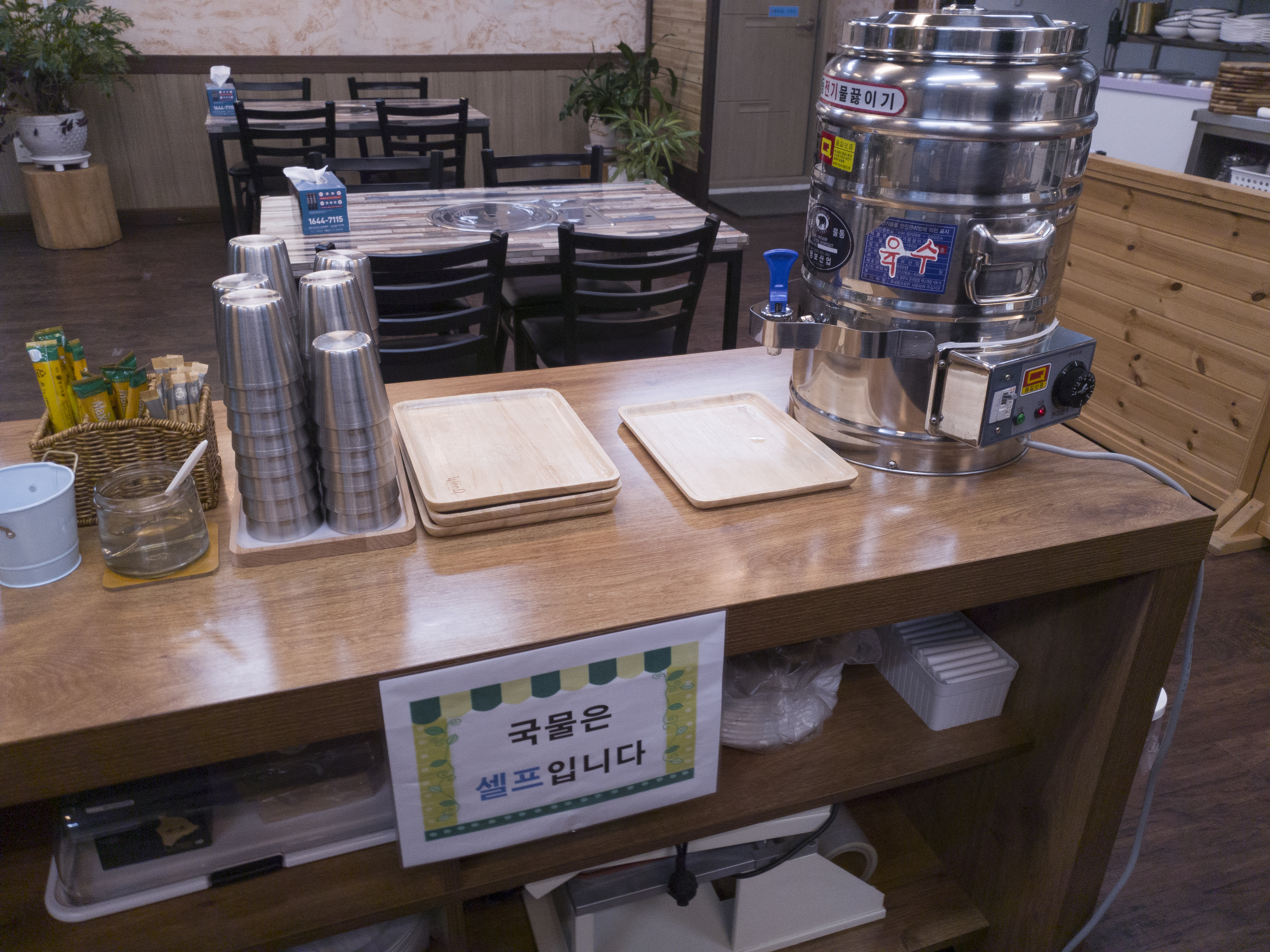 매장의 중간에는 육수와 커피를 셀프로 마시는 공간이 준비가 되어있었다. 따뜻한 육수는 겨울에 몸을 녹여주는 느낌이라 좋고 커피는 자판기가 아닌 일반 믹스와 원두가 준비가 되어있었다. 이런 부분들이 뭔가 정감이 간다는 느낌이 들어서 더 좋게 보이기는 했다. 그리고 하나하나 직접 가져다주는 것보다 이런 사소한 것들은 셀프로 하는 것이 더 편하다고 생각이 든다.
