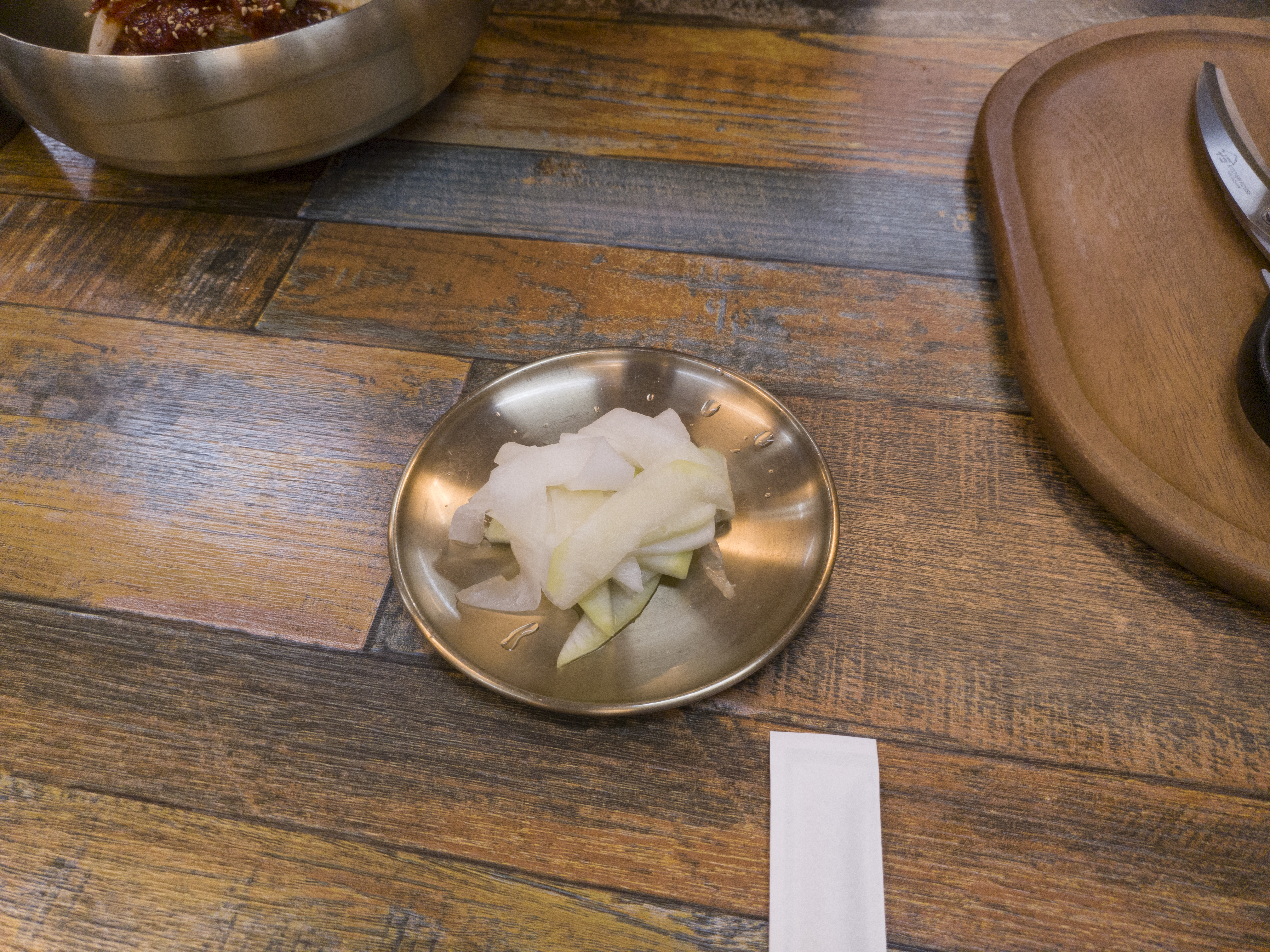 다양한 반찬들은 없고 단지 하나 이렇게 무절임이 함께해서 나왔는데 거의 손을 대지 않았다 그냥 코다리 냉면의 하나만 보아도 거의 완성품이라고 느껴질 정도라고 생각을 했기 때문이다.