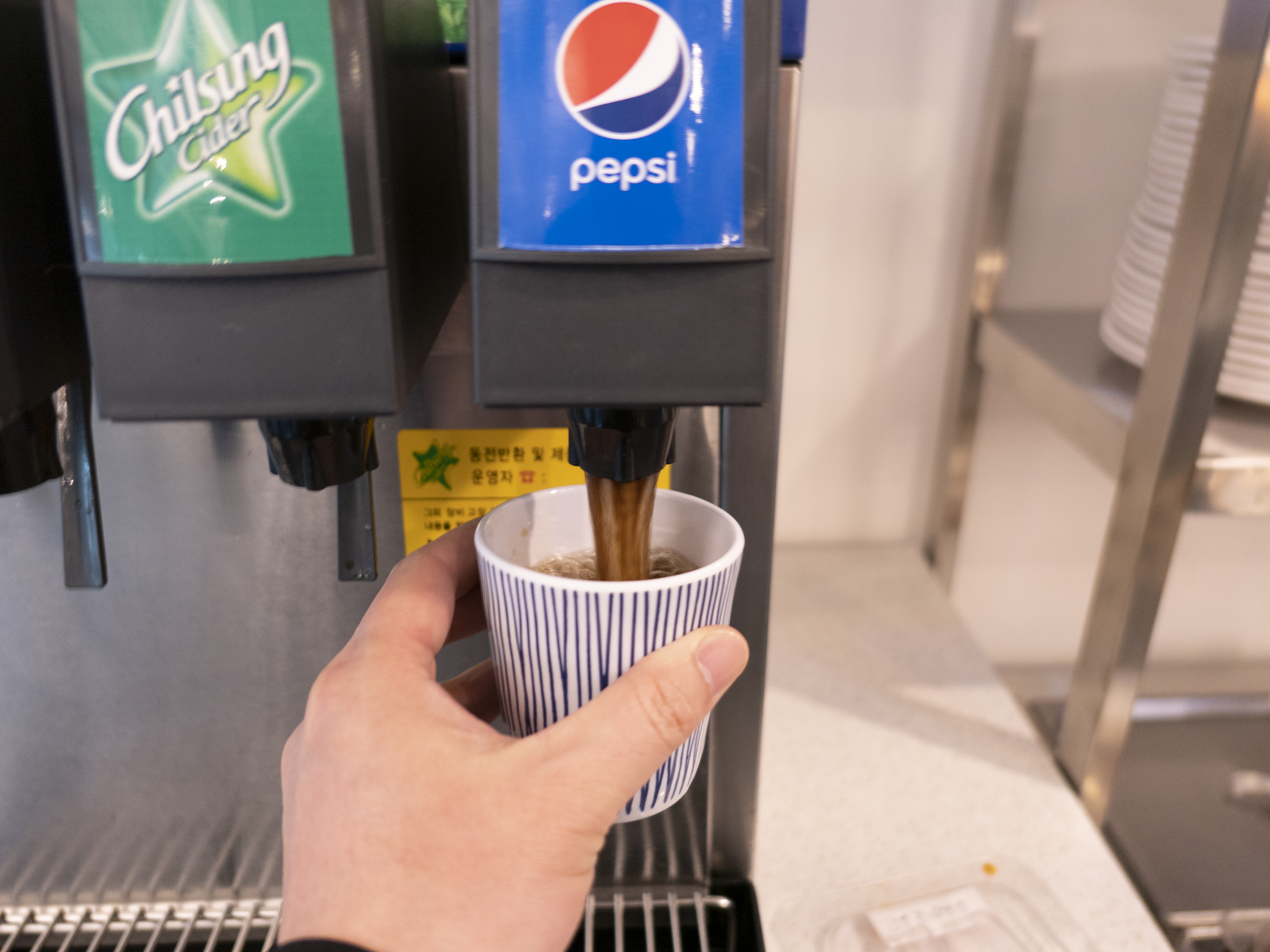 음료가 제공이 되기는 하는데 음료는 따로 천 원을 추가를 해야 무한리필로 즐길 수 있네요. 사실 이런 곳에 와서 안 먹을 수가 없어서 저도 추가를 해서 먹었습니다. 한동안 음료를 끊고 살았는데 지금은 또다시 먹고 있습니다. 튀김과 음료는 빼놓을 수 없는 궁합이라고 해야 할까요.
