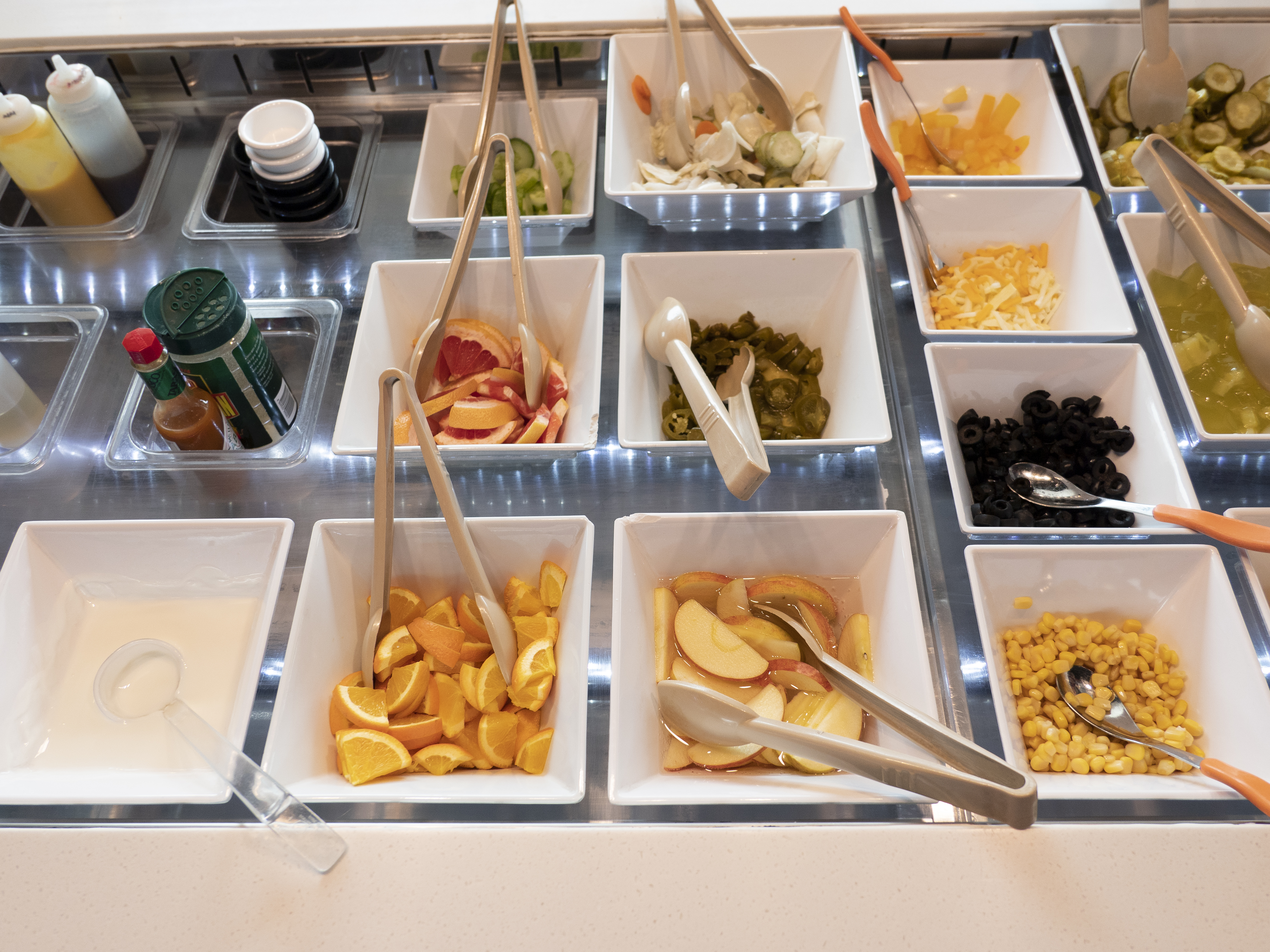 다양한 샐러드들도 준비가 되어 있는데 자몽이 은근히 괜찮네요. 느끼한 맛을 한 번에 싹 잡아주니까 한 조각을 먹고 입가심으로 딱 먹으면 괜찮네요 쌈싸름함이 입안에서 돌고 나니까 개운해지는 느낌이라고 해야 할 것 같습니다. 오렌지나 사과 이런 과일들은 그냥 폄범한 편이었고 적당하게 샐러드바는 잘 구비가 되어있는 편이라고 할 수 있었습니다.
