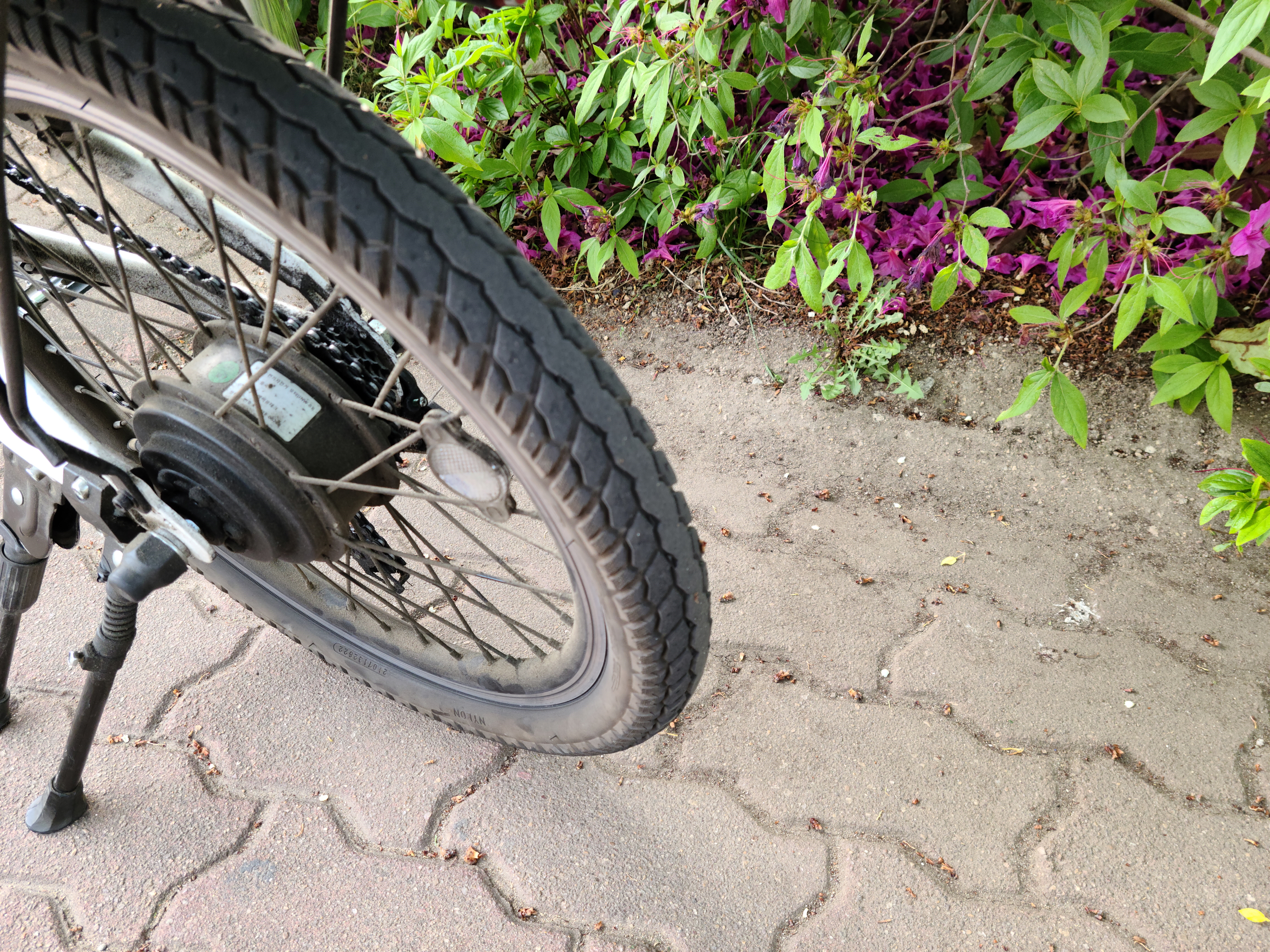 리튬이온 배터리에 큰 충격을 가하면 얼마나 위험한지는 다들 잘 아는 내용이라고 생각을 한다. 그래서 킥스탠드를 하나 더 달았다. 자전거의 무게가 있어서 그런지 점점 옆으로 기울어지기는 하는데 그래도 한 개만 세웠을 때보다 조금 더 안정감이 생기게 되었다. 물론 다시 접을 때마다 살짝 더 불편한 감은 있지만 안정적으로 세울 수 있다는 것에 더 감사하게 생각을 하고 있다. 이후에는 어떻게 하면 또 다른 스탠드로 바꾸어 볼까 여기저기 찾아보고 했는데 찾을 수 없고 비용도 만만치 않아 보여서 그냥 킥스탠드 2개를 세운 것으로 만족을 하고 있다. 그리고 바람이 아주 심하게 부는 날이다 싶을 정도인 날에는 그냥 아예 눕혀서 놓거나 거치대가 있는 곳을 찾기도 했다.