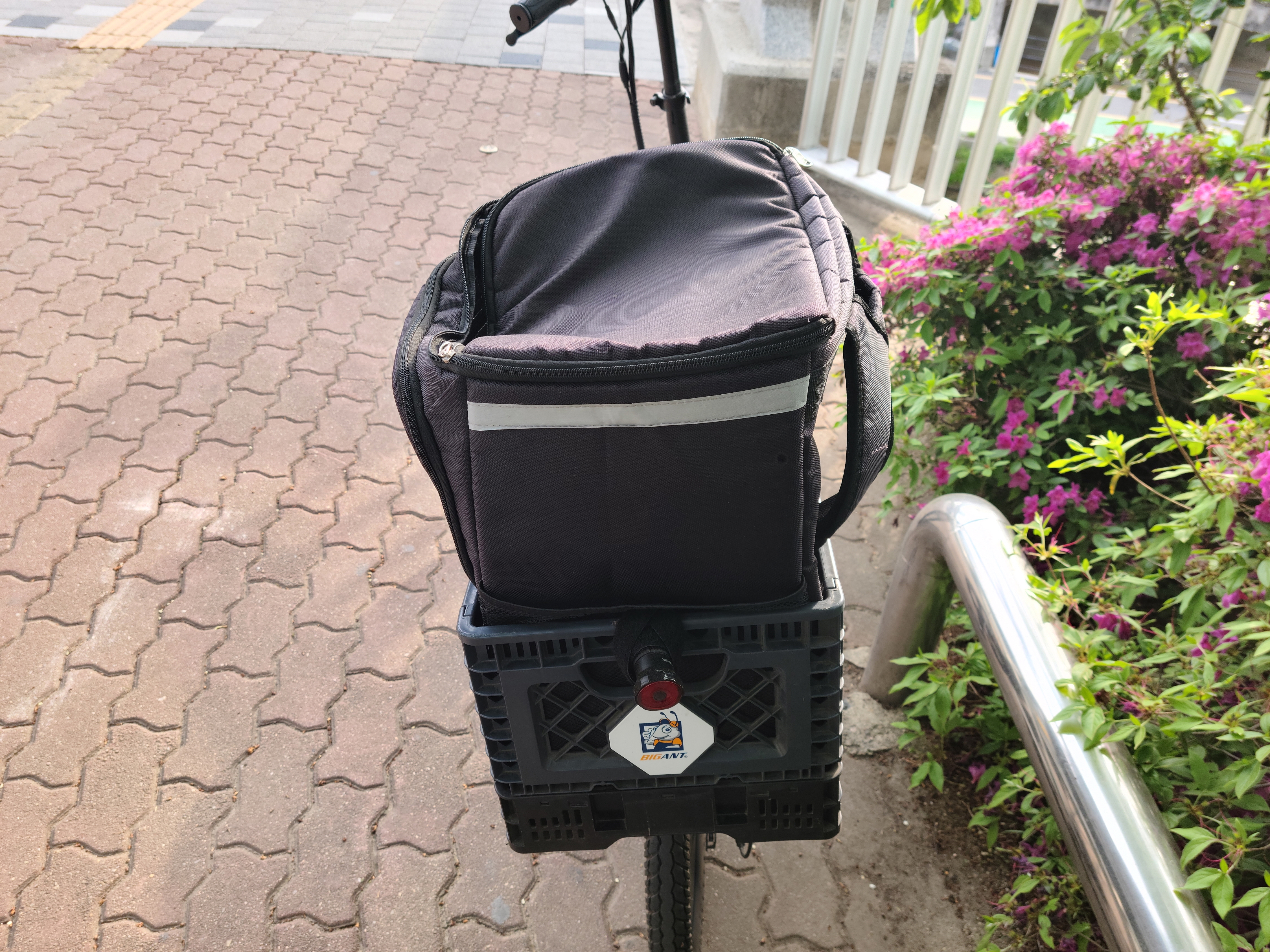 이렇게 사용을 하면 뭐 따로 분리를 하면서 사용을 할 수 있다는 장점이 있다. 어느 정도 담아야 할 물건들이 많이 있다고 한다면 가방을 메고 타면 더 안정적으로 이용을 할 수 있고 여기서 만족을 하고 있다. 눕혀서 갈 수도 있기는 하겠지만 그렇게 되면 무게중심이 틀어지는 날도 많이 있어서 그냥 물건을 많이 담아야 한다고 생각이 되면 박스에서 분리를 해서 어깨에 메고 간다