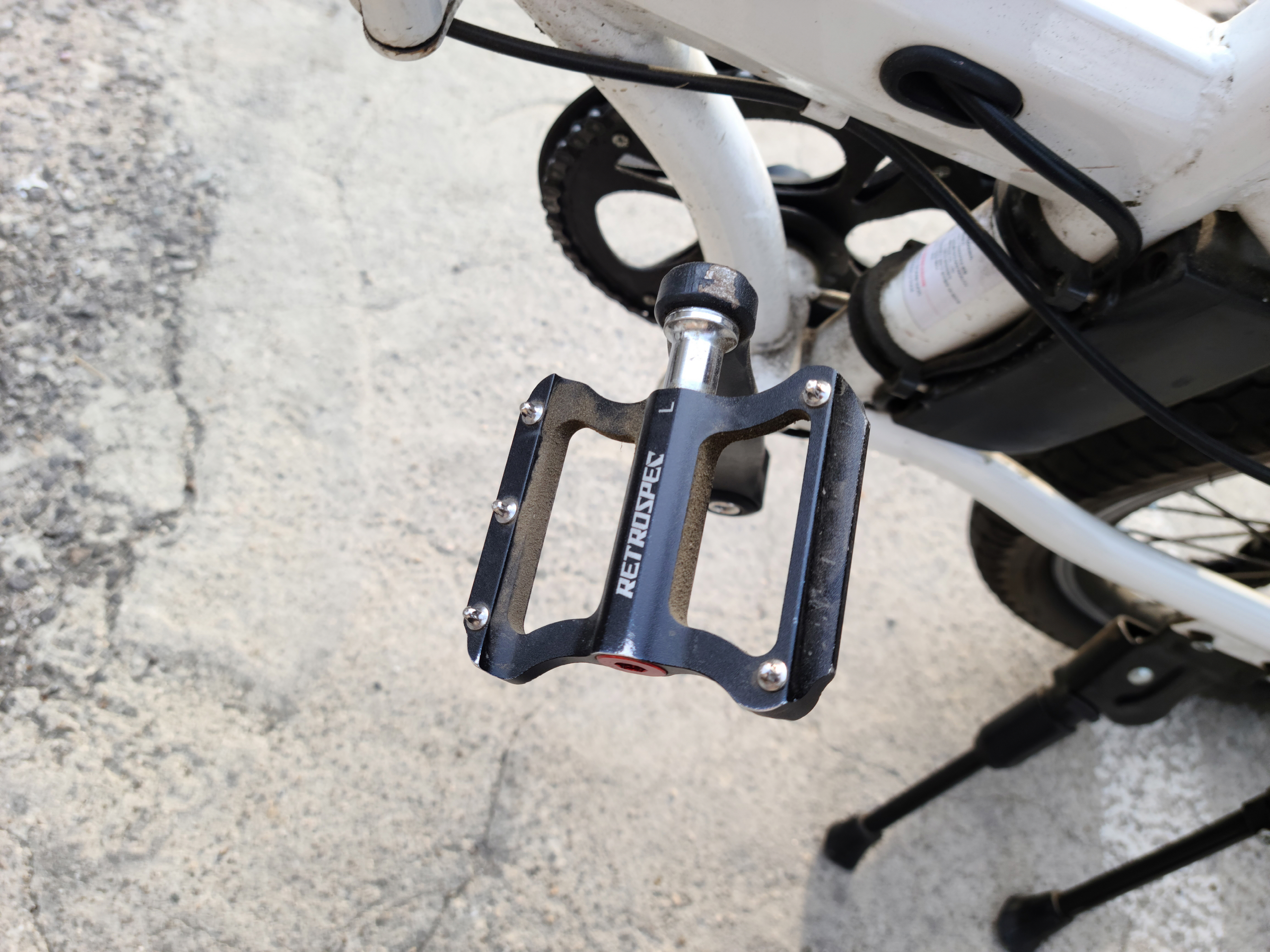은근히 고장이 잘 나는 제품 중에 하나가 바로 플라스틱 페달이었다. 쓰다 보니까 그냥 부서지는 일들이 상당히 많았다 어디 부딪친 기억도 많이 없었는데 그냥 쓰다보니까 너덜너덜 해지기 시작을 하면서 부서지고는 했다. 그래서 하다가 안 되겠다 싶어서 그냥 그런 일이 없는 알루미늄 재질의 페달로 교체를 해버렸다. 장점은 한 번도 고장이 날 일이 없이 꾸준하게 잘 쓰고 있다는 것이고 단점이라고 한다면 저 뾰족한 부분이 가끔 발바닥을 짜릿하게 찌른다라는 느낌을 줄 때도 있어서 좀 그렇긴 하다. 전용 라이딩 신발이 있기는 하겠지만 생활형 자전거에 라이딩신발을 쓰고 싶지는 않아서 운동화만 잘 쓰고 있고 어느 정도 짜릿해지면 운동화를 교체할 때가 되었구나 하고 있다.