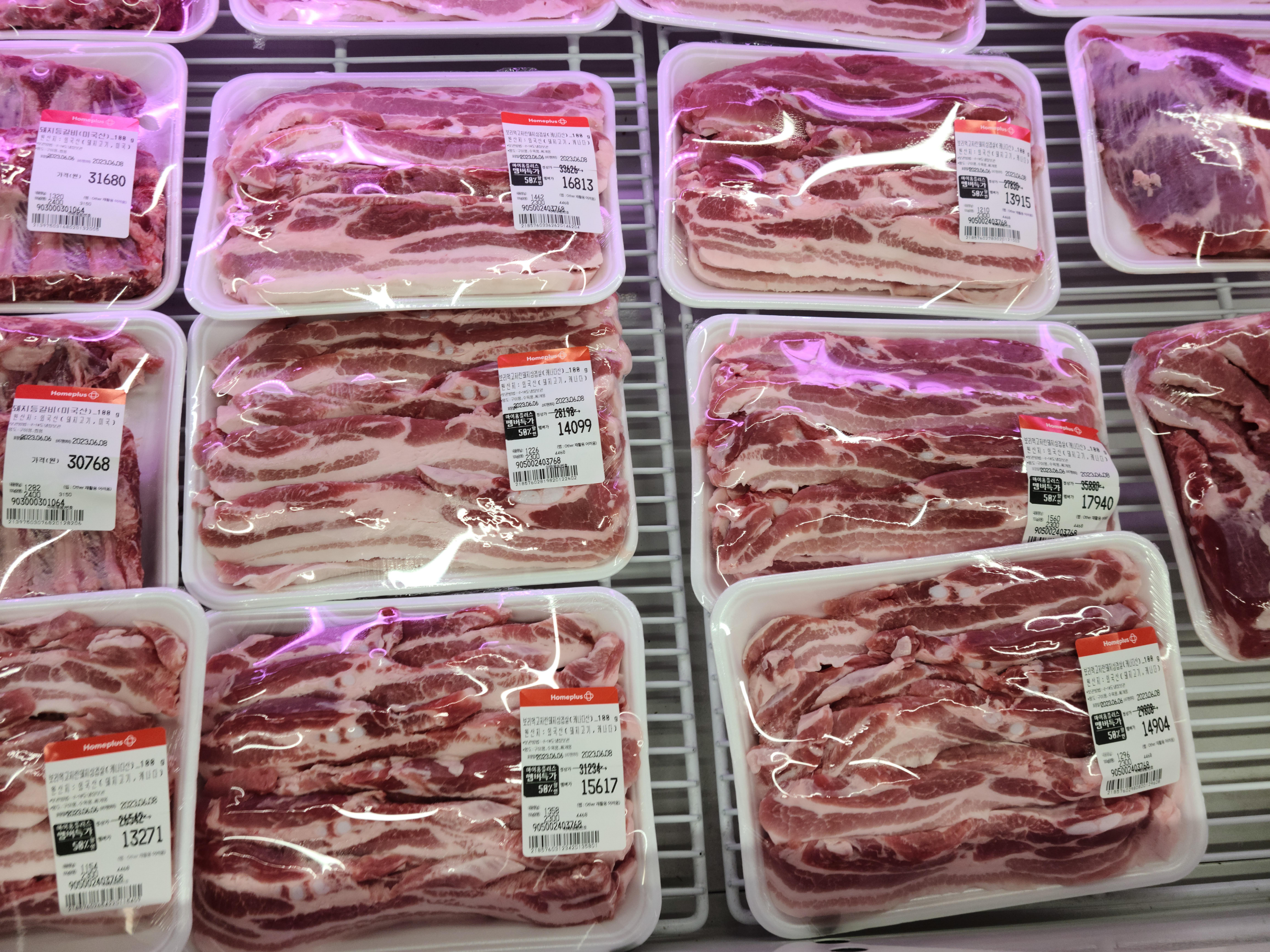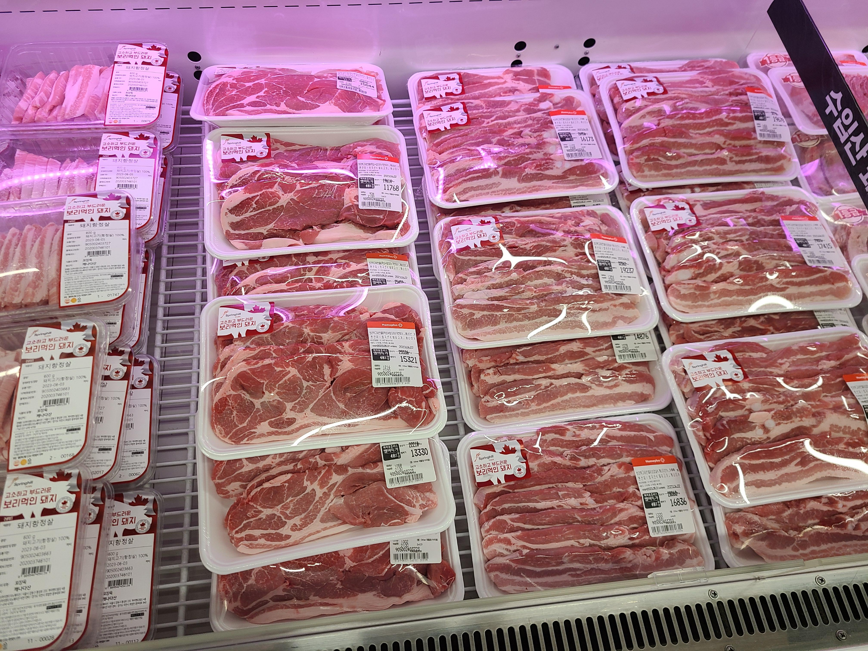 냉장칸에 보관이 되어있고 정육코너에 가면 쉽게 발견을 할 수 있었다. 퀄리티가 아마 가장 궁금한 부분이라고 생각을 하고 있다. 개인적으로는 국내산 > 수입산 > 국내산 냉동 > 수입산 냉동 이런 순으로 퀼리티가 정해지는 듯하는 생각이 든다. 보통 무한리필로 제공이 되는 삼겹살의 경우 대부분 수입산이기는 한데 꽁꽁 얼려있어서 구우면 물이 질질 흐르는 그런 육질의 고기가 제일 마음에 안 든다.