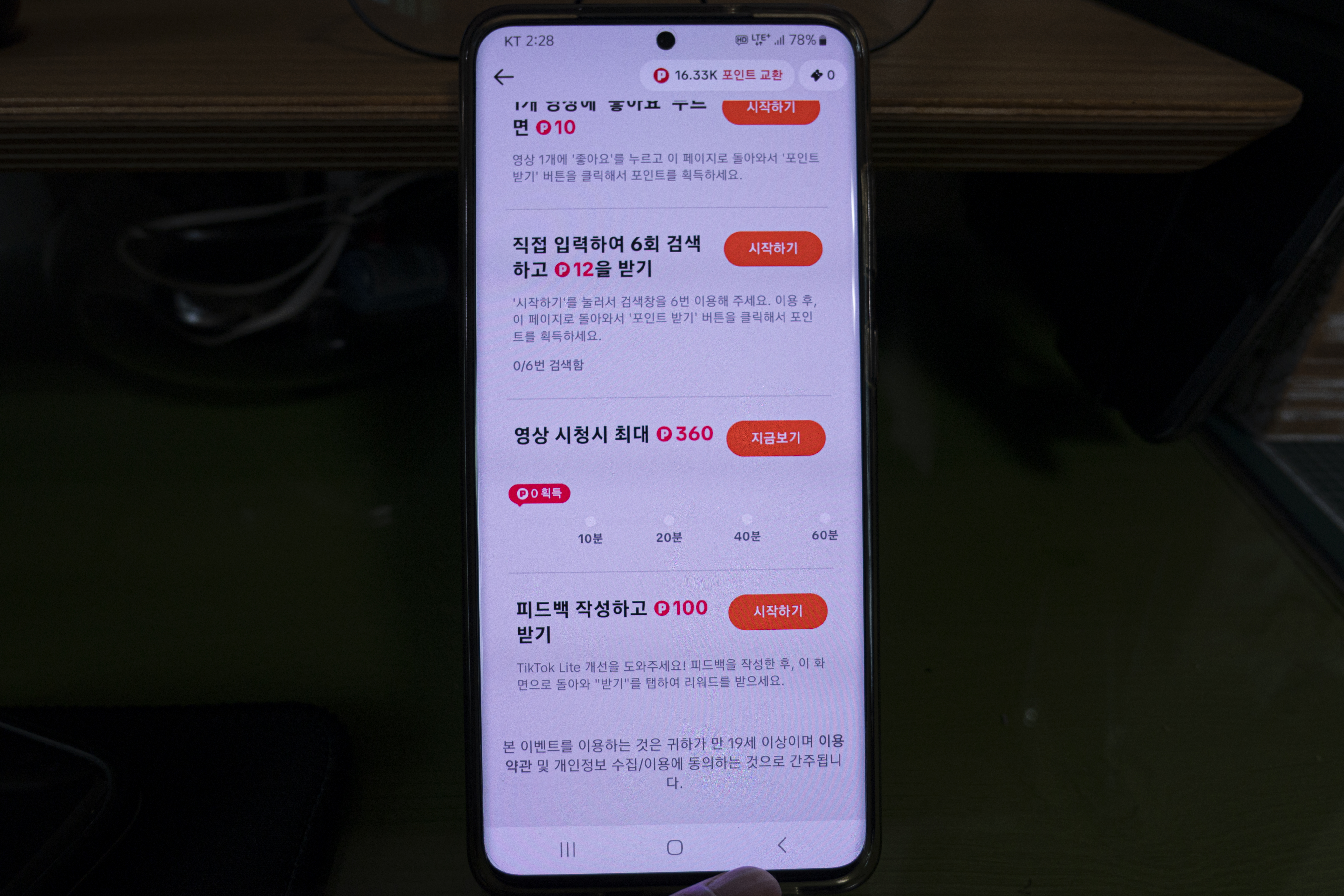 언제까지 이런 수익을 만들어서 하게 될지는 모르겠지만 그래도 수익을 받을 수 있을 때 받아가는 것이 당연한 것이 아닐까 하는 생각이 들기는 합니다. 틱톡라이트를 활용을 해서 영상을 보면 그리고 출석체크를 하면 자연스럽게 쌓여나가는 것을 볼 수 있습니다. 이게 과연 제대로 되는 것인가 하는 의구심은 들기는 합니다.