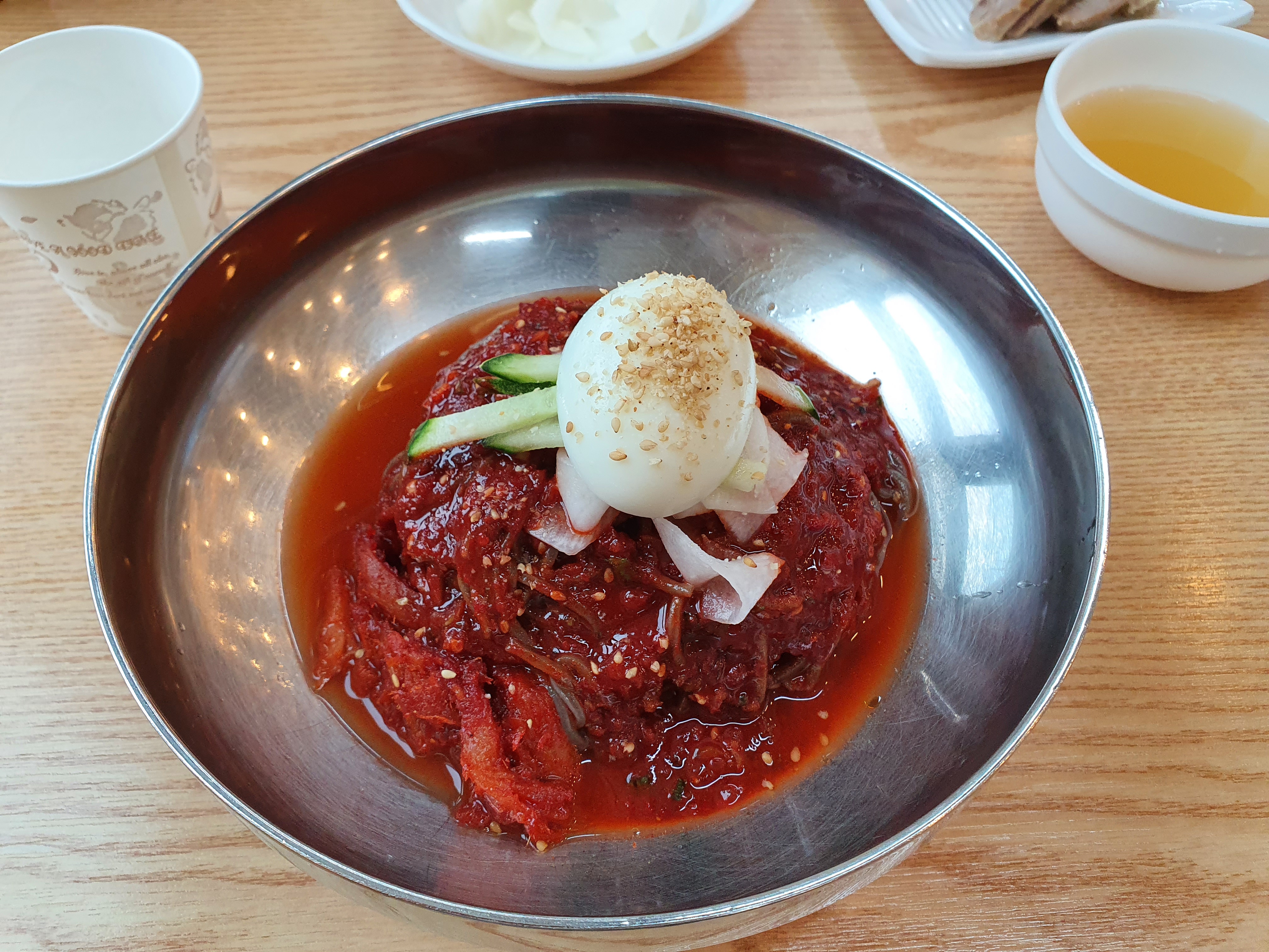 고기의 퀼리티는 보통 무난했다. 질기거나 하지는 않았고 잘 삶은 듯 한 느낌이 좋았다. 뷔페에 가면 가끔씩 먹는 그런 종류의 보쌈수준이였는데 냄새가 나거나 하지 않았고 함께 나오는 무도 같이 먹기에 좋았다. 물론 냉면과 함께 먹기에도 더 좋았던 느낌이다.