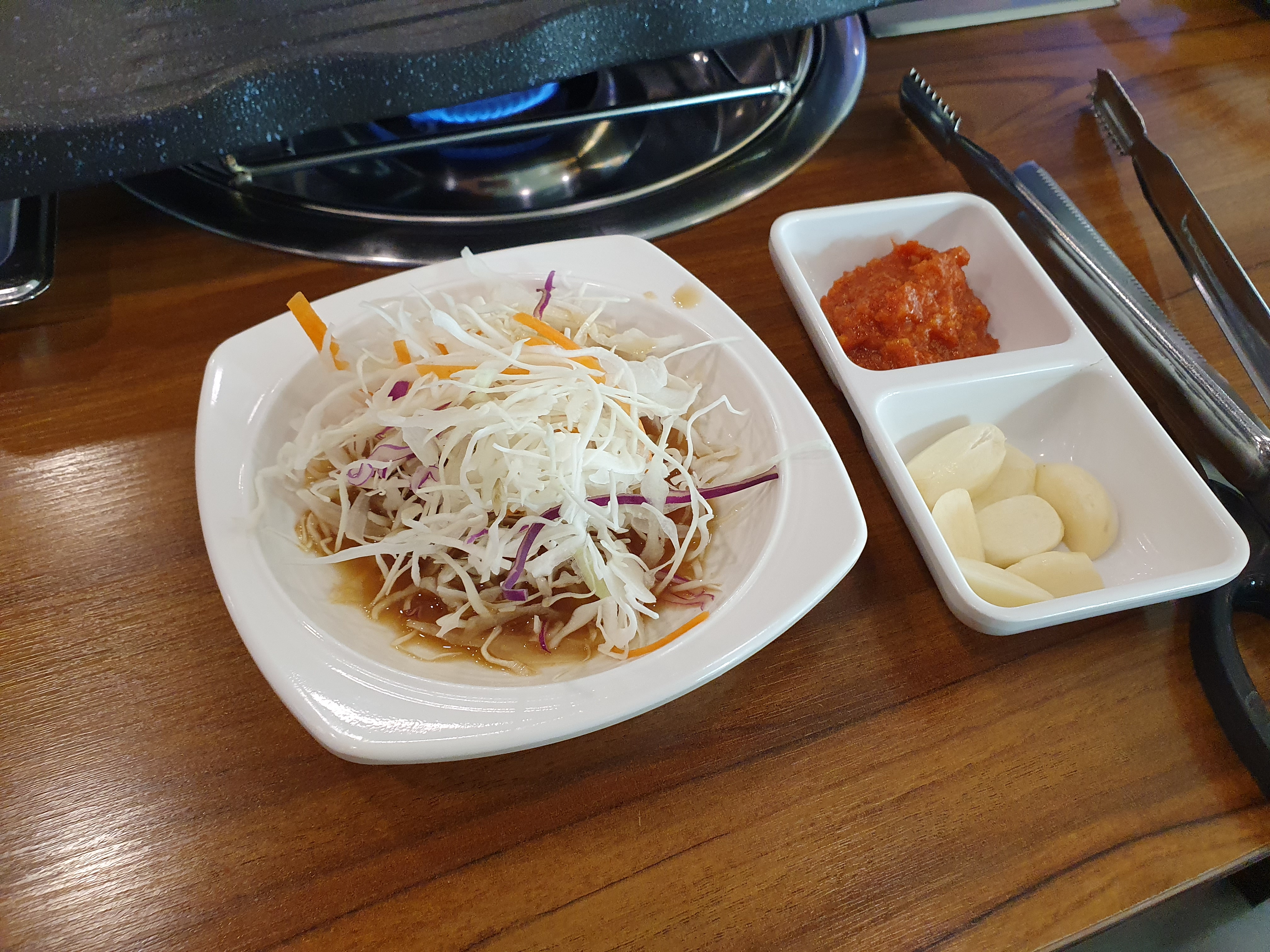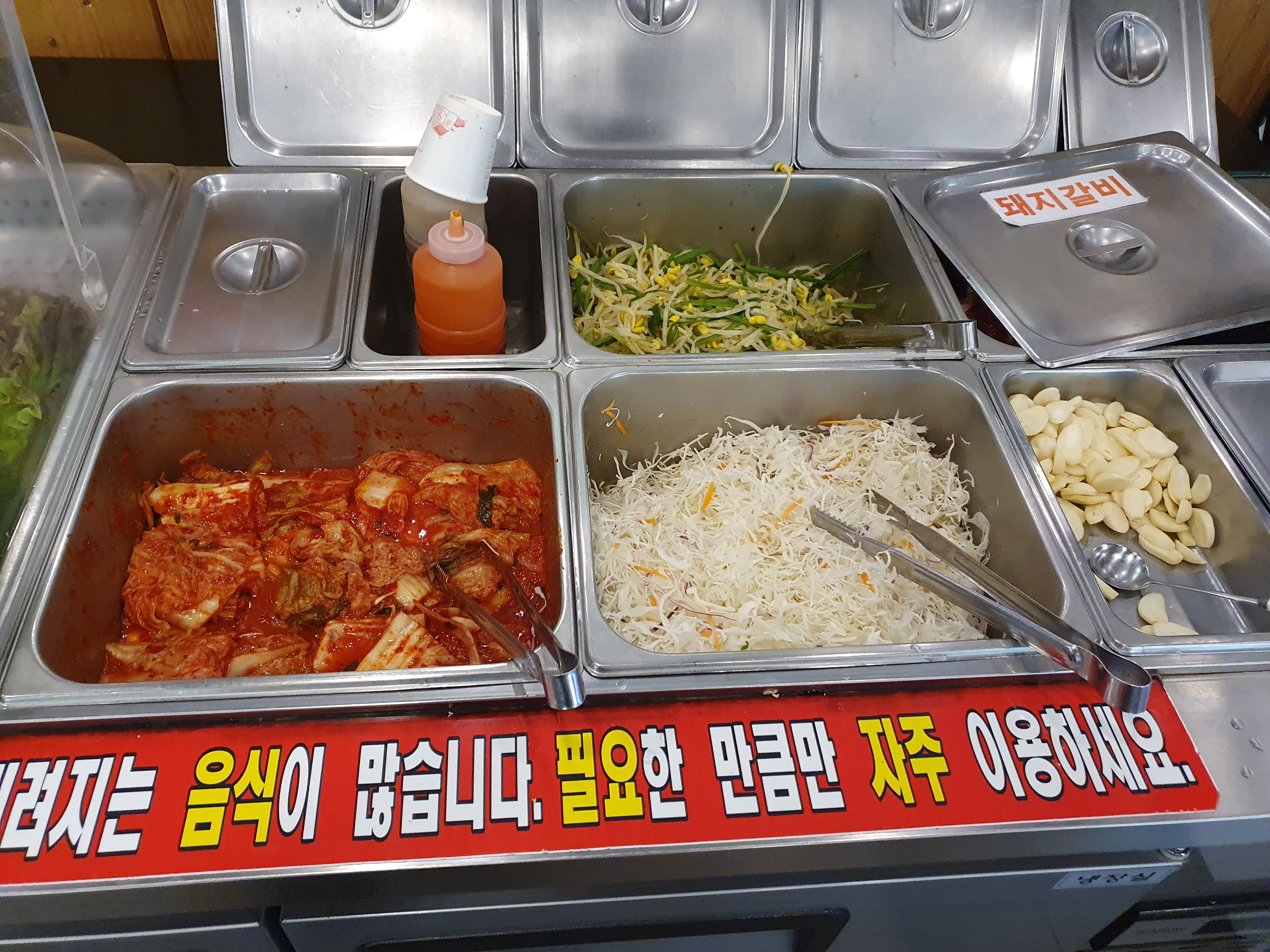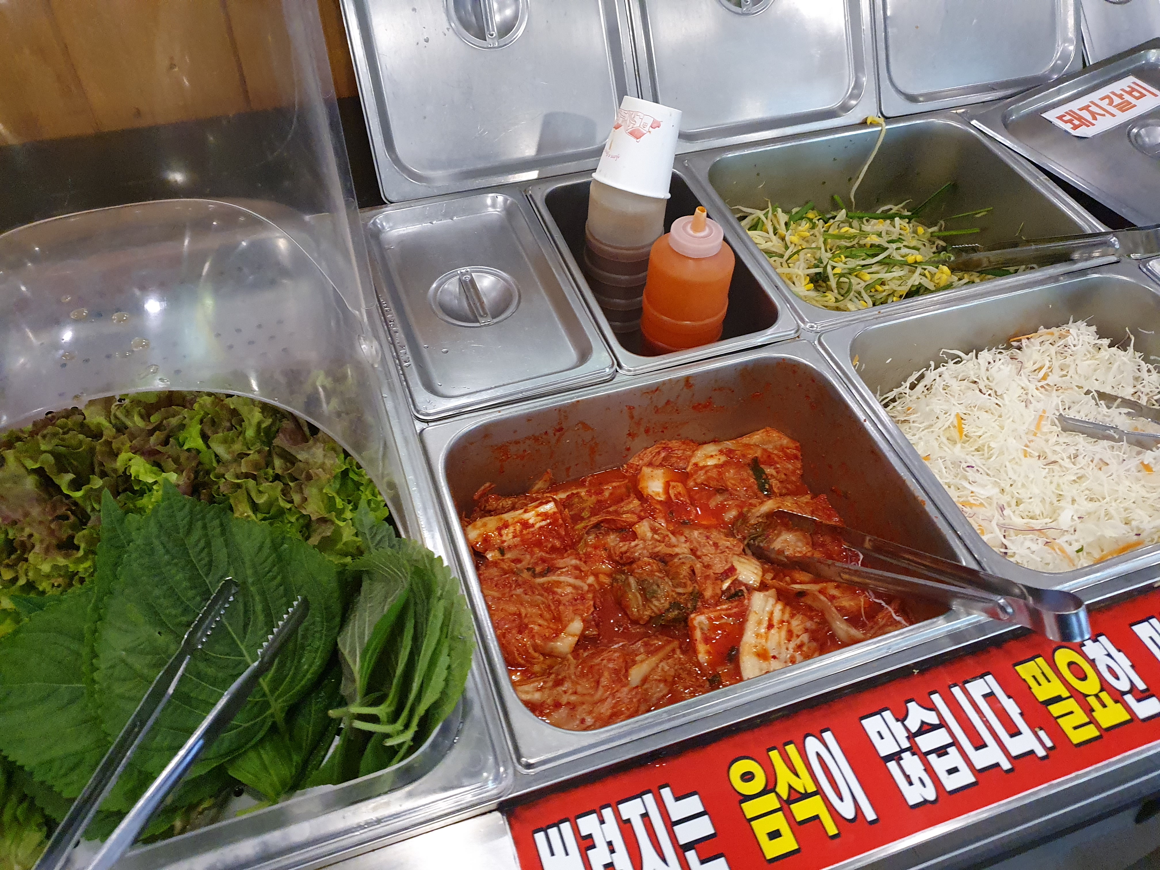 기본찬은 나오는데 크게 인상적인 것은 없다. 뭐 보통 삼겹살집에서 나오는 정도의 수준이다. 물론 셀프코너가 있으니까 이를 참고하면 좋을 듯 하다.