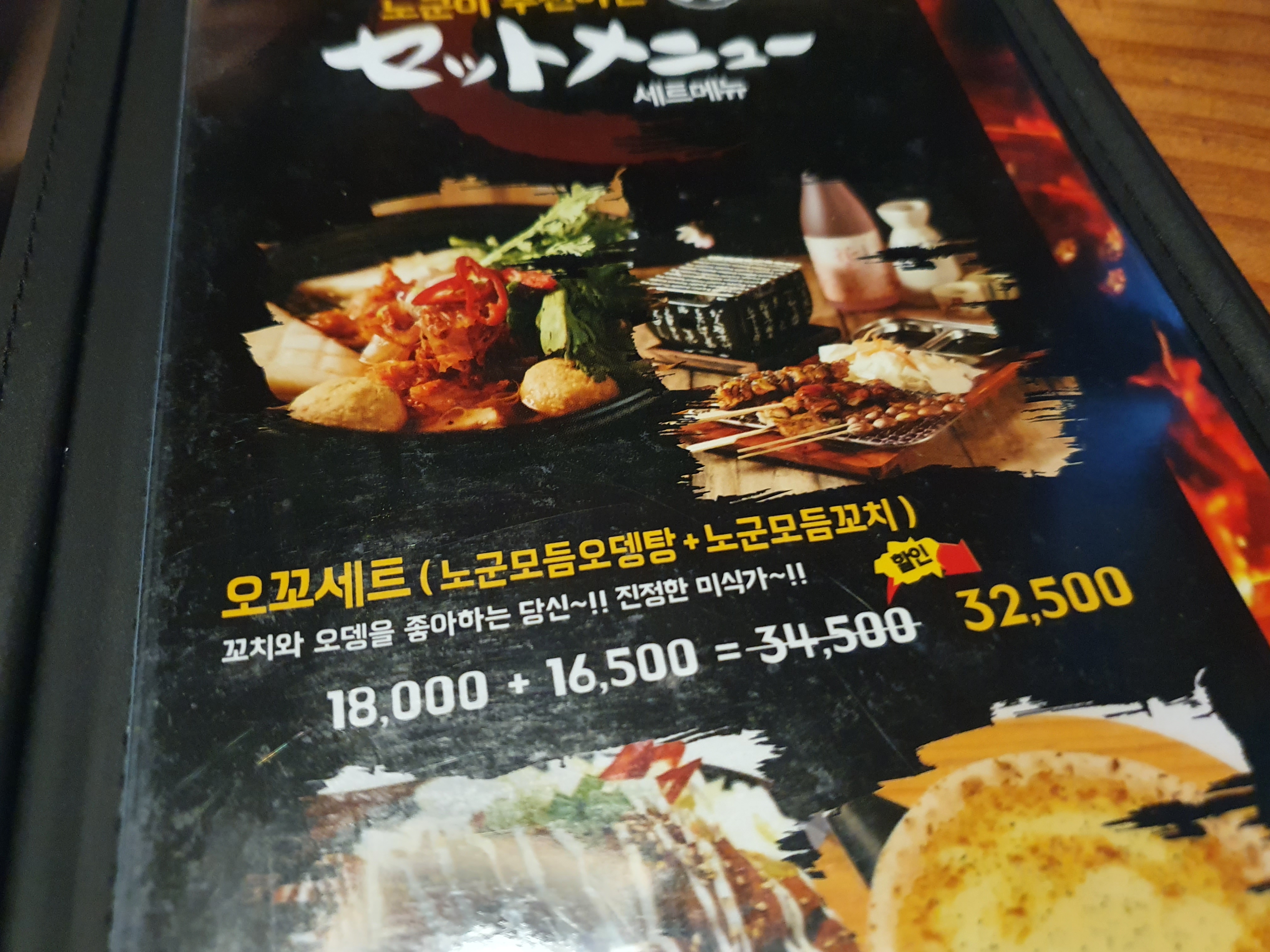 친구 넷이서 가서 먹었는데, 가장 무난한 메뉴처럼 보이는 오꼬세트를 주문을 했다. 오뎅과 꼬치를 다들 좋아하는 편이기도 하고 해서 두가지가 나오니까 간단하게 먹을려고 했다.
