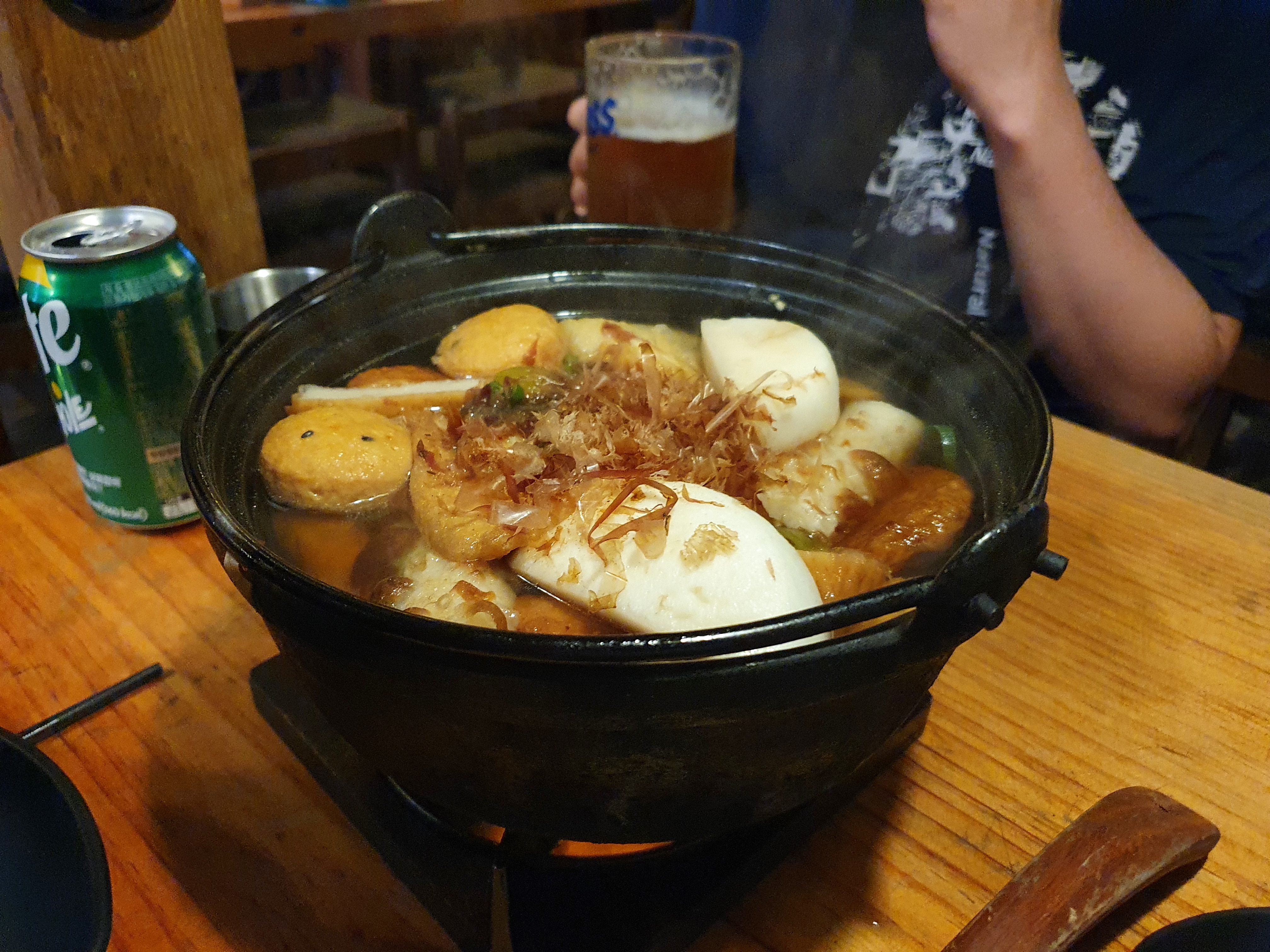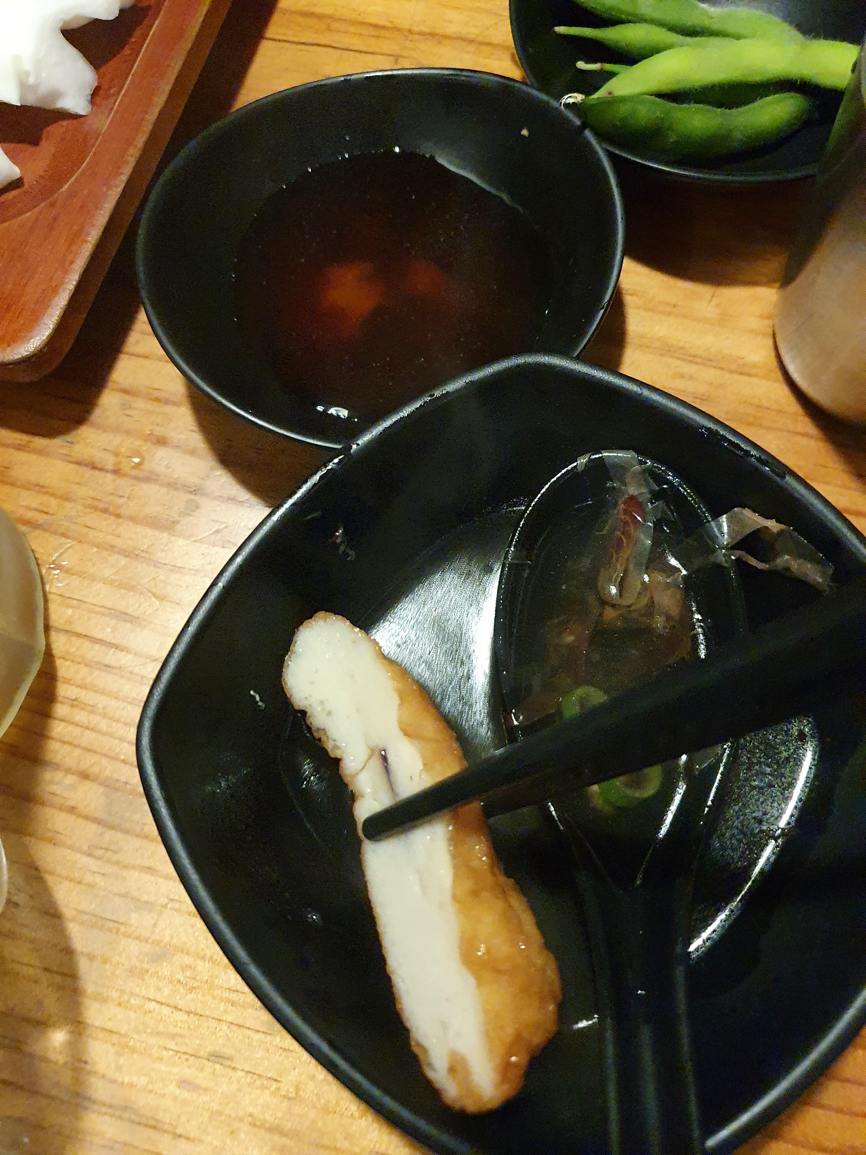 첫번째 먼저 나와준 오뎅탕이다. 국물 맛도 좋았고 평소에 먹어보던 그런 어묵이 아니라 다양한 어묵이 있어서 괜찮았다 다. 이정도면 충분히 괜찮은데 하는 생각이 들 정도로 깔끔했고 가쓰오부시도 뿌려져 있어서 은근히 오뎅탕하고 잘 어룰린다는 생각이 들었다.