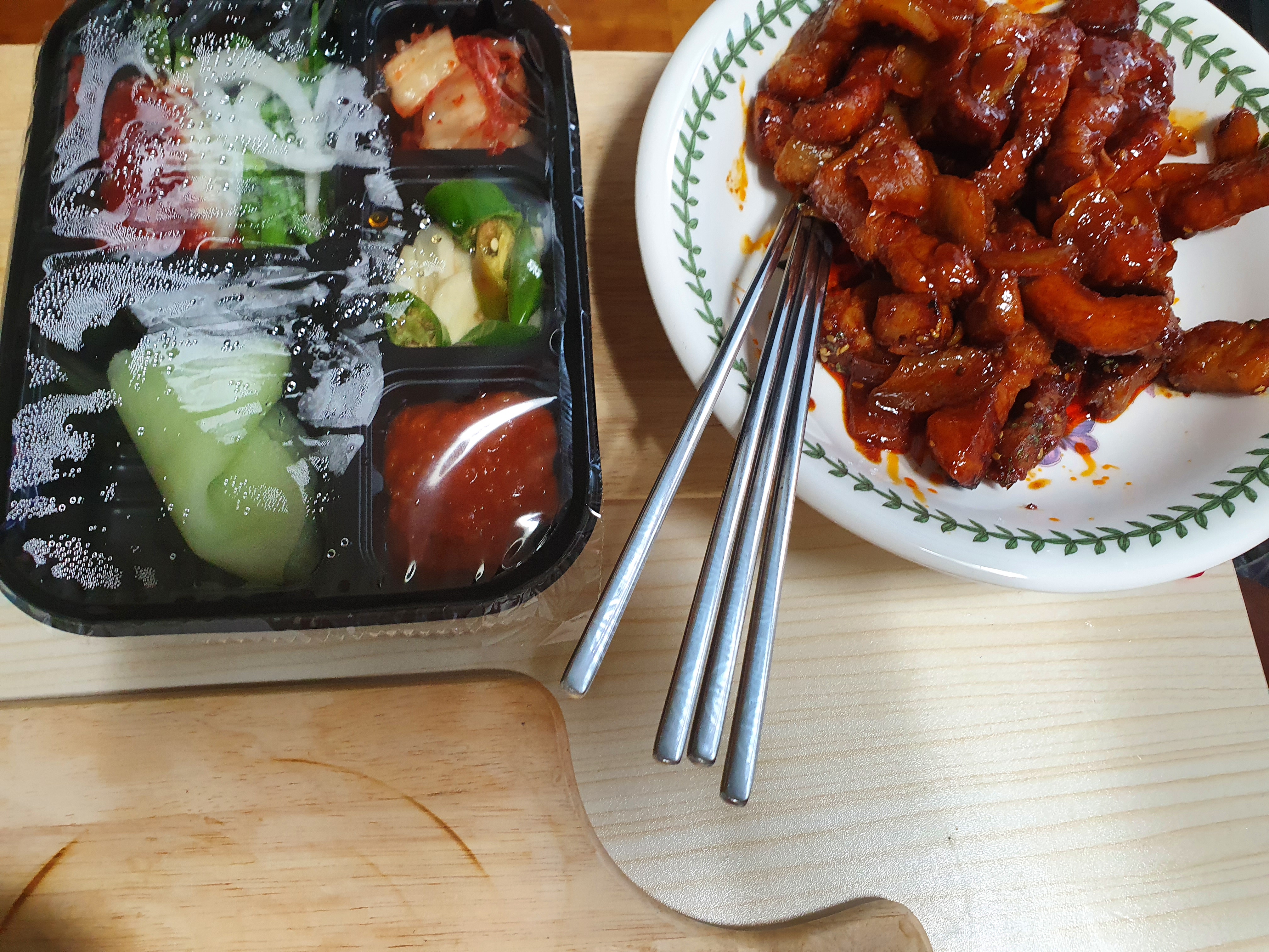 이 집만의 매력이라고 한다면 역시 고추장삼겹살 자글자글 하면서도 쌈싸먹기 좋게 잘 해놓은 것이 특징이네요 그리고 무엇보다 집에서 삼겹살 먹기도 귀찮고 혼자 집에서 삼겹살을 먹고 싶다고 느낄 때 딱 선택을 하기 좋은 최고의 선택지 바로 배달이지요.