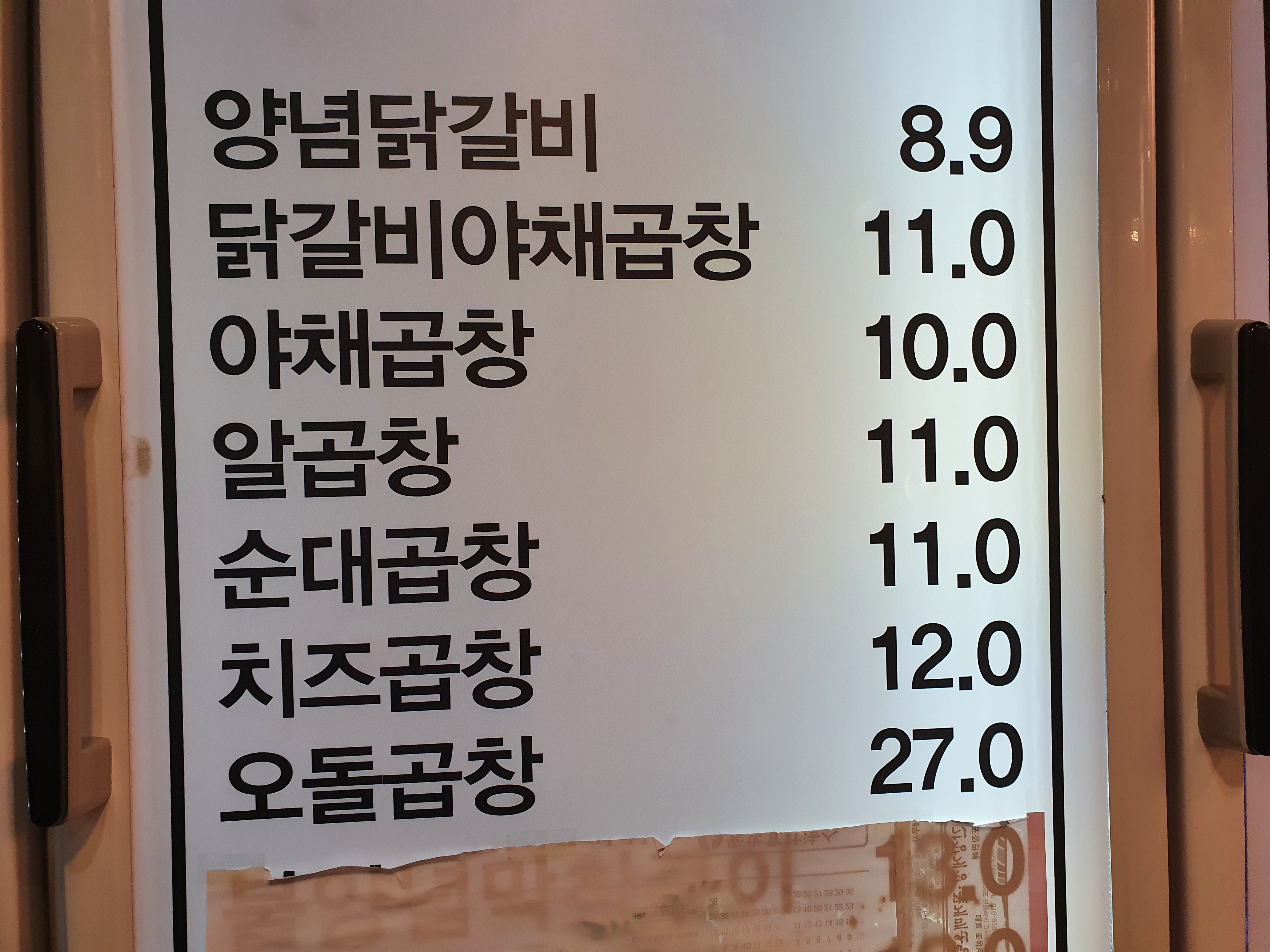 가격은 나름대로 착한 편이라고 생각을 해요. 여기에 포장을 하면 할인이 있어서 가끔 포장도 해서 집으로 가져가서 먹기도 합니다. 여기서만 먹을 수 있는 닭갈비+야채곱창 이 조합이 은근히 어울리더라구요