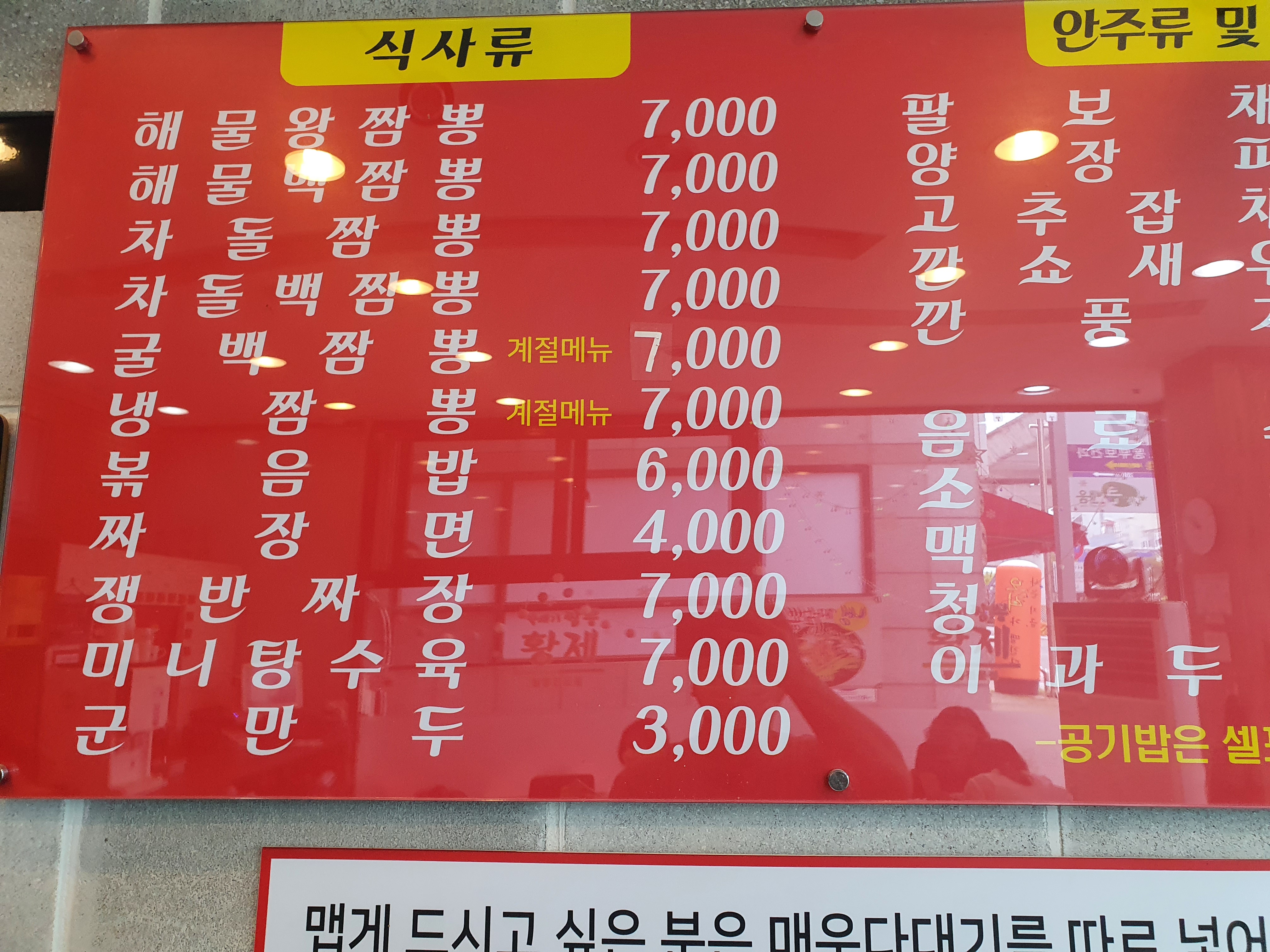 1. 가격이 쟁반짜장 7천원