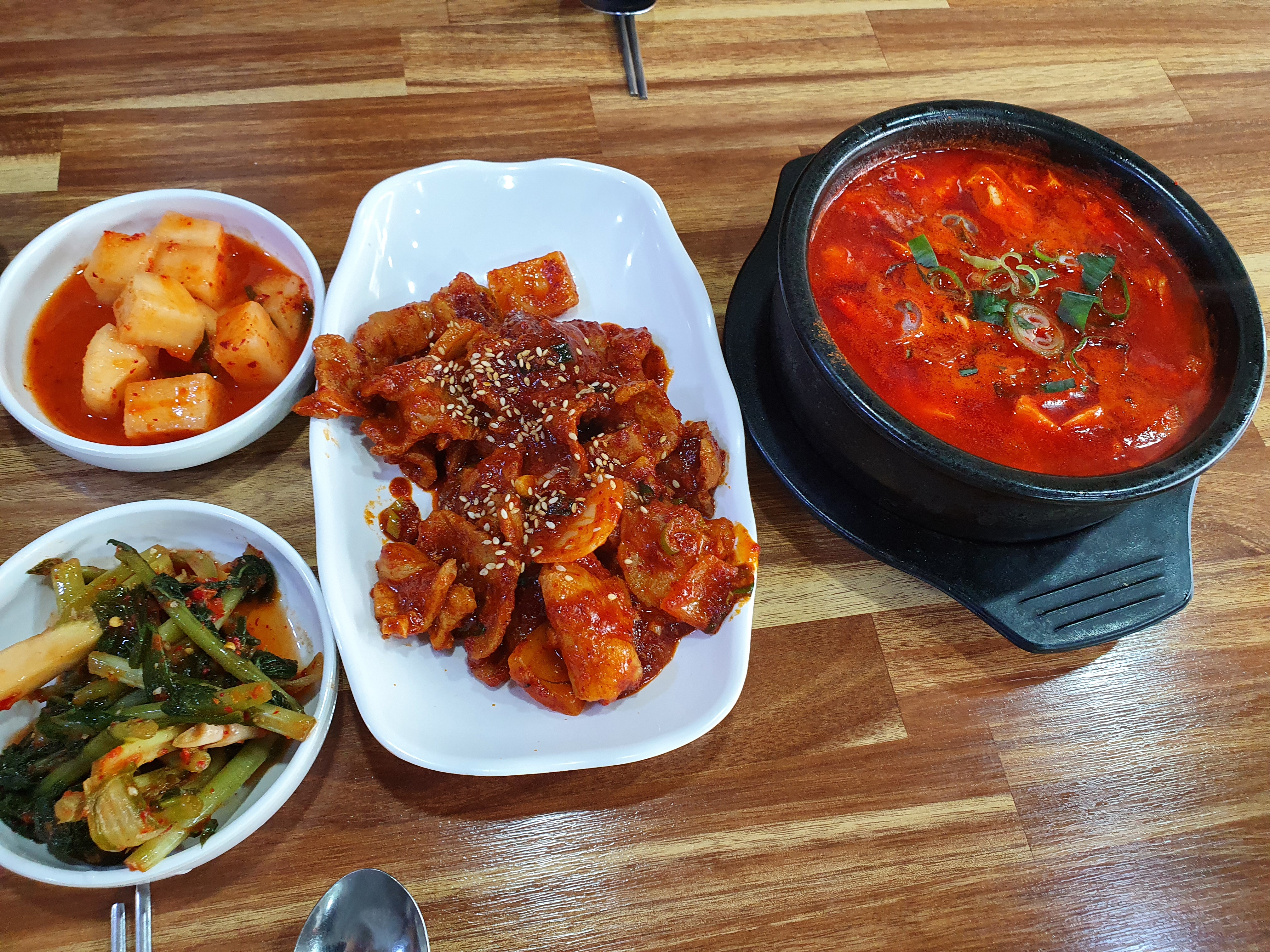 고기의 육질은 보통인데 살짝 매콤하니 밥이랑 함께 해서 먹기에 나쁘다는 생각이 들지 않았다. 어딜가나 제육을 먹어보면 집마다 다들 하는 취향과 맛이 조금씩 다른데 무난한 수준의 맛과 육질을 보여주는 집이였다.