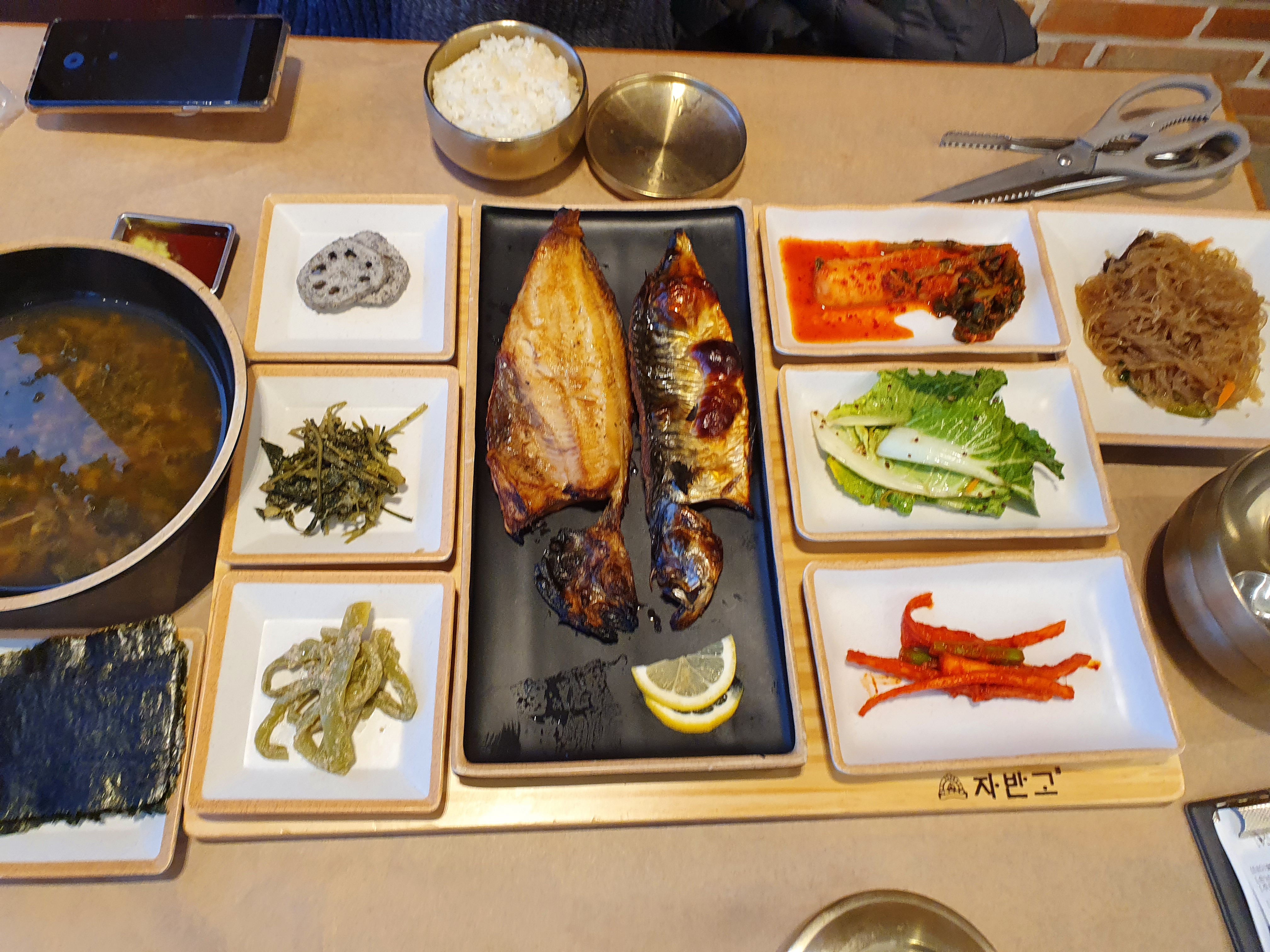 한마리가 아니라 반마리라는 점이 조금 아쉽기는 했다 그래도 만원하는 생선구이가 조금 아쉽기는 하지만 그래도 다행이라고 느끼는 점은 여기 셀프바가 있다. 셀프바를 찍는 것을 깜박했지만 나름대로 잘 준비가 되어있었고 깔끔했다 한식 위주의 셀프바가 있어서 생선구이를 아주 좋아하는 사람이 아니라면 어느정도 셀프바로 대처는 가능하다라고 느낀다