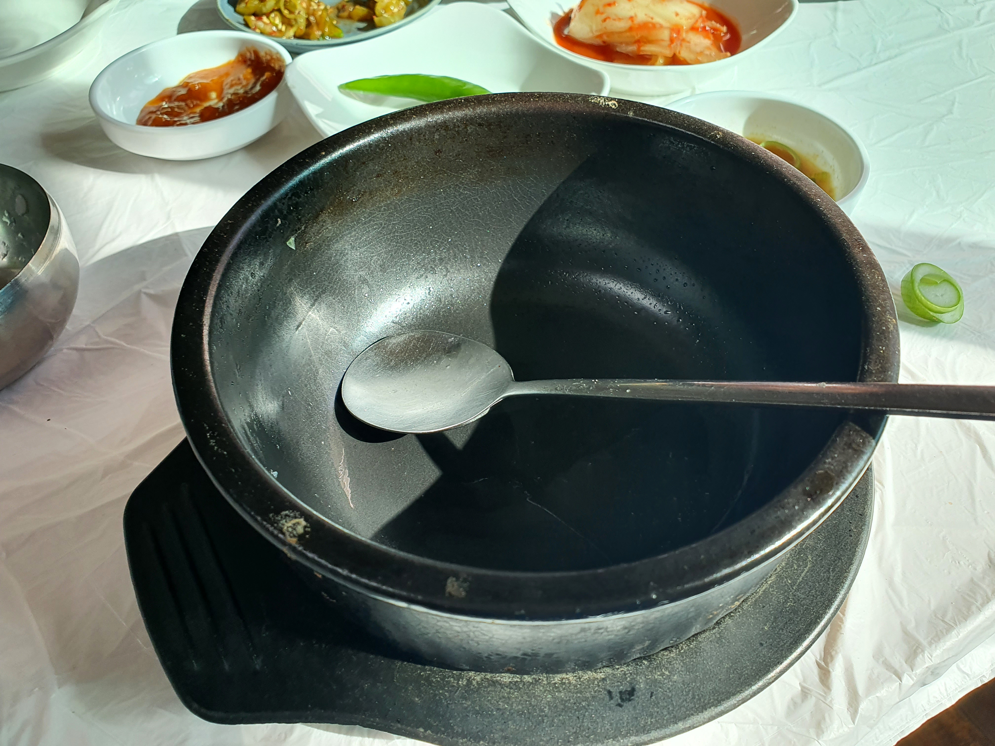 깍두기하고 김치하고 몇번씩 얹저서 먹다보면 금새 한그릇을 뚝딱 해치우게 됩니다. 정말 깔끔하게 한그릇을 다 비우게 되었네요 은근 이런게 보약이 아닐까 하는 생각도 가지게 되는 것 같아요. 고소하니 국물 육수느낌이 너무나 마음에 들었습니다.