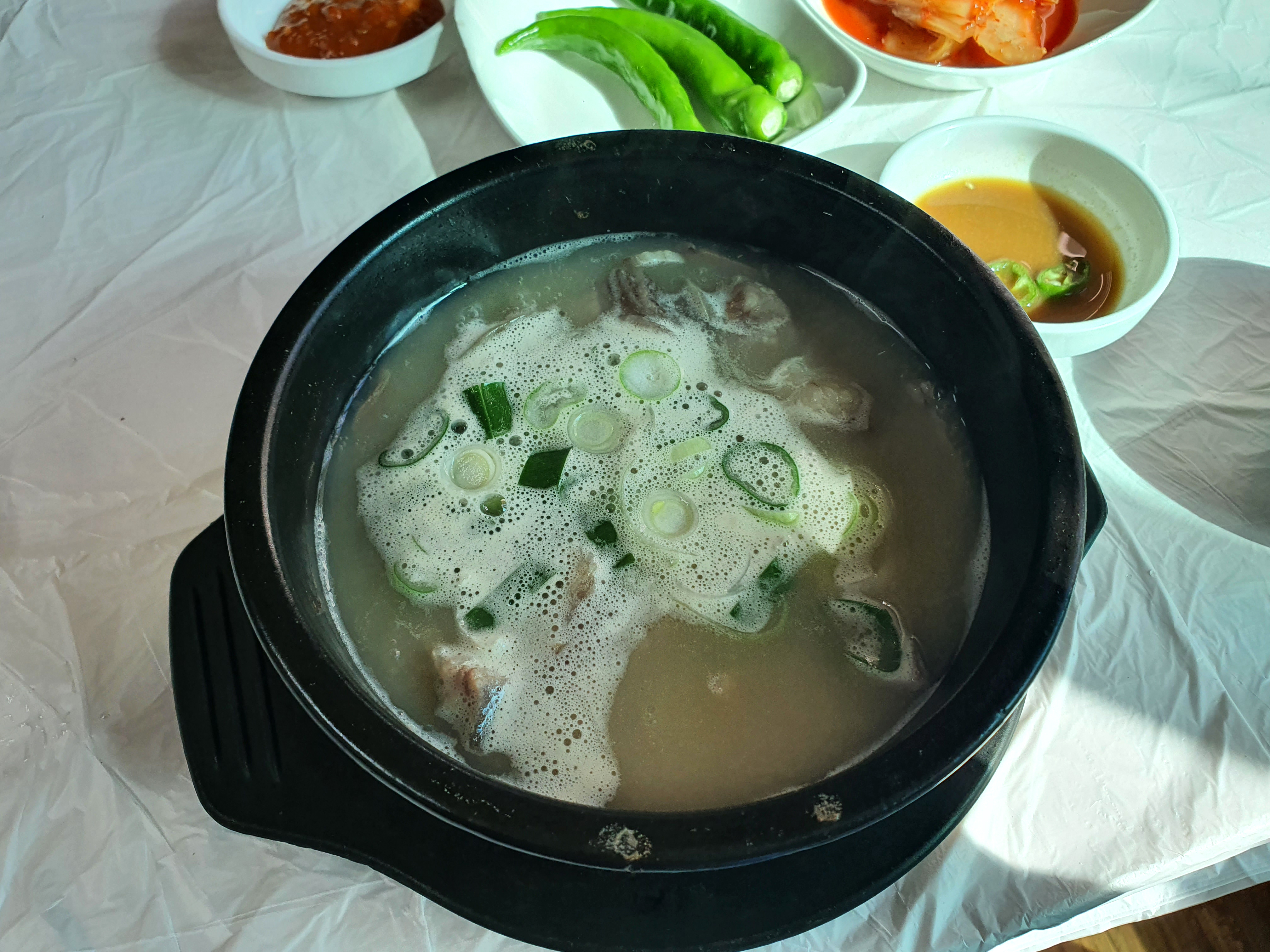 소머리 국밥이 나왔습니다. 정말 구수하면서도 시원한 느낌을 줄 것 같은 정갈한 소머리 국밥이에요 이정도면 내용물도 나빠 보이지 않는 수준으로 괜찮다는 생각이 들었습니다.