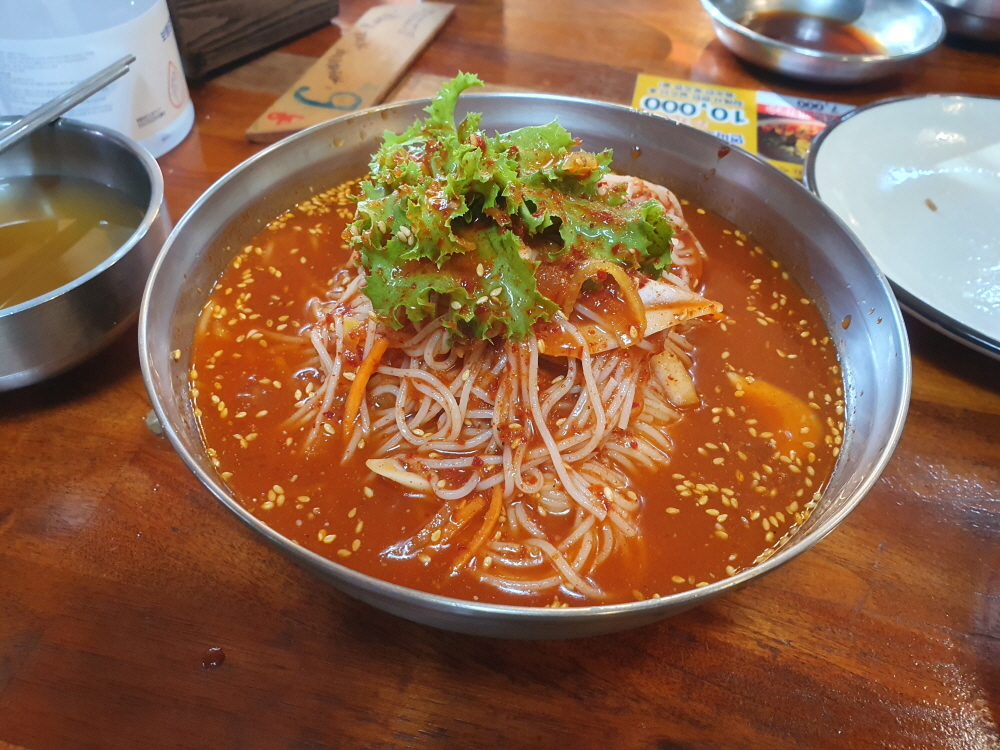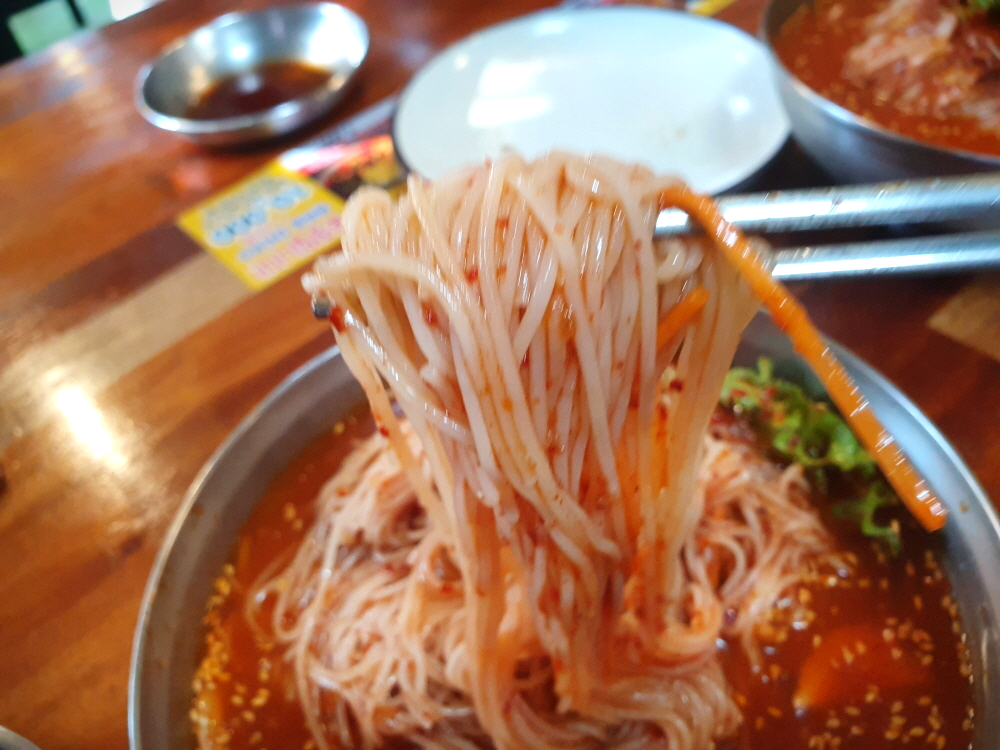 다양한 메뉴들이 있기는 하지만 제가 가장 많이 먹는 메뉴는 시원한 비빔입니다. 사실 메밀이 들어간 것하고 들어가지 않은 것하고 살짝 고소하고 차이가 있기는 하지만 크게 차이가 나는 것은 모르겠고 익숙한 맛이라고 해야 할까요 그래서 저는 그냥 일반 시원한 비빔이 더 좋더라고요