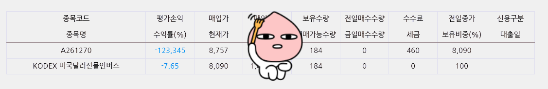 그렇게 나의 달러 인버스는 계속해서 추락을 하고야 말았다 달러는 계속해서 오르고 반대로 인버스는 계속해서 떨어지는 상황이 펼쳐지고 있다. 하지만 나는 뭐 그렇게 까지 어렵게 생각을 하지 않는다. 물론 언제는 달러는 1500원을 뚫을 수도 있다 하지만 그만큼 나는 또 현물을 가지고 있기 때문에 결론적으로 손해를 보고 있다고 말을 할 수는 없다. 따지고 보면 면 양손에 창과 방패를 둘 다 쥐고 있는 것이기도 했다.