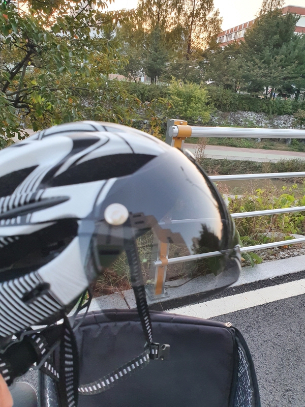 꼭 중요하다고 생각을 하는 부분이 저 헬멧과 고글입니다. 고글이 왜 필요하냐면 진짜 여름이든 겨울이든 열심히 달리다 보면은 벌레가 얼굴에 와서 부딪치는 경우가 은근 종종 발생을 합니다. 어릴 때 자전거를 탈 때는 이런 일이 없었던 것 같은데 전기자전거여서 그런지 속도가 조금 더 빨라져서 그런지 얼굴에 벌레가 날아와서 부딪치는 경우가 꼭 있고, 꽃가루가 날리는 경우도 있기 때문이에요. 문제는 하필이면 꼭 눈에 맞을 경우가 있습니다. 그럼 바로 아찔하게 쓰러질 수밖에 없어요 그렇기 때문에 안전을 위해서라도 고글과 함께 사용을 하시는 것을 추천드려요. 하지만 단점은 있습니다. 마스크와 함께 하면 숨 쉴 때 정말 뿌옇게 되는 일들이 너무 많아서 답답한 순간이 올 때도 있어요. 그래도 꼭 헬멧과 고글은 사용을 하시는 것은 필수입니다. 아 그리고 전 그런 적은 없지만 단속에 잡히시는 분도 본 적이 있습니다. 헬멧은 필수사항이지만 이왕이면 고글과 함께 되어있는 것이 더 좋아요.