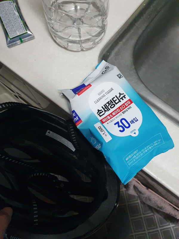 저 위생에 너무 꼼꼼하게 철저하게 생각을 해야 합니다. 은근히 몇 번 배달을 하고 나면 가방에 음식 냄새가 너무나 심하게 나는 경우가 많이 있어요 하루에 한 번 정도는 깔끔하게 닦아주는 게 좋기 때문에 저는 손세정 티슈를 사용을 하고 있어요 상당하게 가격이 저렴한 편이라고 생각을 해요. 일반 물티슈를 사용을 하는 것보다 베이킹소다와 에탄올이 있기 때문에 조금 더 위생적으로 사용을 할 수 있는 것 같아요. 그래서 한번 배달을 하고 나면 헬멧과 보냉 가방, 자전거 손잡이 등 구석구석 닦는 데 사용을 하고 있습니다.
