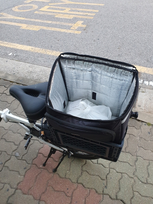 하루 평균 20km 정도를 달린다고 생각을 하고 다니면 될 것 같습니다. 두 다리가 정말 건강해지고 있다는 느낌을 받을 수 있어요. 다른 자동차, 도보, 킥보드 등을 사용을 해보았지만 비가 오거나 하지 않는다면 일반적으로는 자전거가 제일 편하게 느껴지고 있습니다. 운행을 하다가 바퀴가 펑크가 나서 도중에 넘어지고 잠시 자전거를 묶어두고 가방을 메고 배달을 완료한 적도 있습니다. 항상 안전이 최우선이라고 생각을 하고 있기 때문에 다양한 변수들이 있다는 것을 감안을 하고 안전한 건 도보가 제일 최고라고 생각은 하지만 그게 또 몇 건 하다 보면 귀찮아서 나름대로 자전거의 장점이 더 많이 있는 것 같아요 그래서 저 같은 경우에는 평소 다양한 이동수단을 사용을 하면서 쓰기 때문에 어디서든 쓸 수 있는 어깨에 메고 쓸 수 있는 보냉가방을 사용을 하고 있습니다. 처음에 도보로 시작을 할 때는 가방을 너무 큰거 산 것 아닌가 싶기도 했어요. 친구가 함사세요~ 하면서 놀리기도 했지만 결론적으로는 다양한 이동수단을 통해서 쓸 수 있기 때문에 처음에 하시기로 마음을 먹었다고 한다면 이런 보냉가방을 사용을 하시는 것도 좋을 것 같아요 물론 오토바이를 쓰시거나 자전거만 하시는 분들이라고 한다면 아예 매립을 해서 쓰시는 분들이 가장 많기는 합니다.