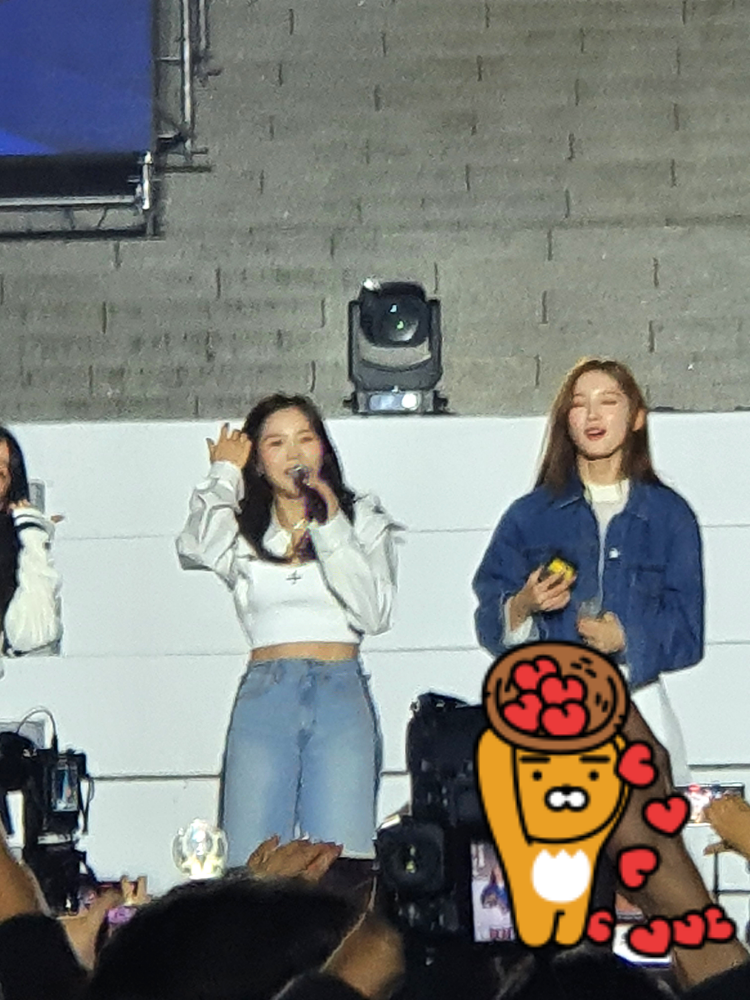 오마이걸이기 때문에 선명하게 찍으려고 노력을 많이 하기는 했지만 쉽지는 않았어요 많은 사람들이 있기도 해서 앞으로 나갈 자신도 없었고 어두컴컴한 시간에 촬영을 하였기 때문에 화질이 조금 아쉬운 점들이 많았습니다. 이때 알았어요 집에 카메라가 그렇게 많이 있는데 왜 이런 날 안 가지고 나왔는지 후회가 되더라고요. 그래도 뭐 그건 나중에 든 생각이고 일단은 오마이걸을 볼 수 있어서 너무나 행복했습니다. 던던 댄스 노래를 부를 때는 어찌나 재미있던지 몸이 들썩들썩 움직여지더라고요