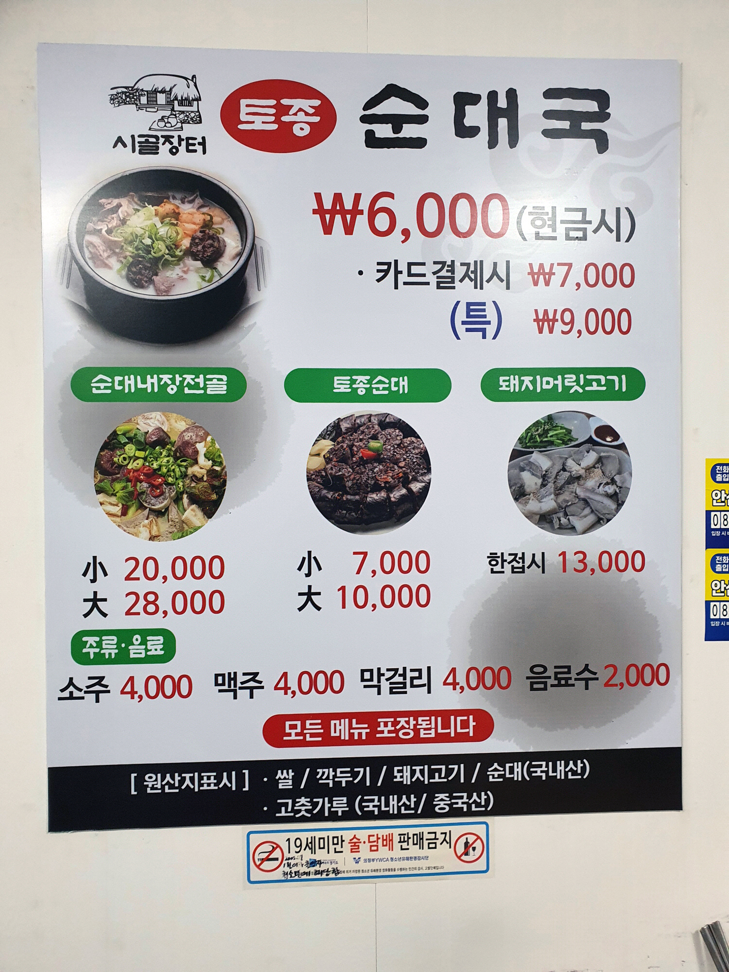 외관을 보면 아시겠지만 가게는 그렇게 크지는 않지만 어르신들이 좋아하는 그런 분위기가 자리를 잡고 있었어요. 밖에 6천원이라고 쓰여있기는 하지만 현금으로만 6천 원이고 카드로 하실 경우에는 7천 원이기 때문에 미리미리 챙겨서 가시는 것이 좋을 것 같아요. 이 동네에서도 가성비 있게 즐길 수 있는 수준이기 때문에 이 정도로만 하더라도 감사하게 생각을 하고 있습니다. 다른 곳들을 가면 보통 기본은 8천 원을 넘나드는 가격이기도 하고 서울로 가면 1만 원도 넘는 곳들도 많이 있기 때문에 이 가격만으로도 감사하게 생각을 하고 있습니다. 예전에 좋아하던 의정부 순대국 맛집들 중에 5천 원에 맛있는 집들이 있었는데 이제는 모두 문을 닫아 버렸어요. 아쉬운 와중에 이 정도만으로도 충분히 감사하게 생각을 하고 있습니다