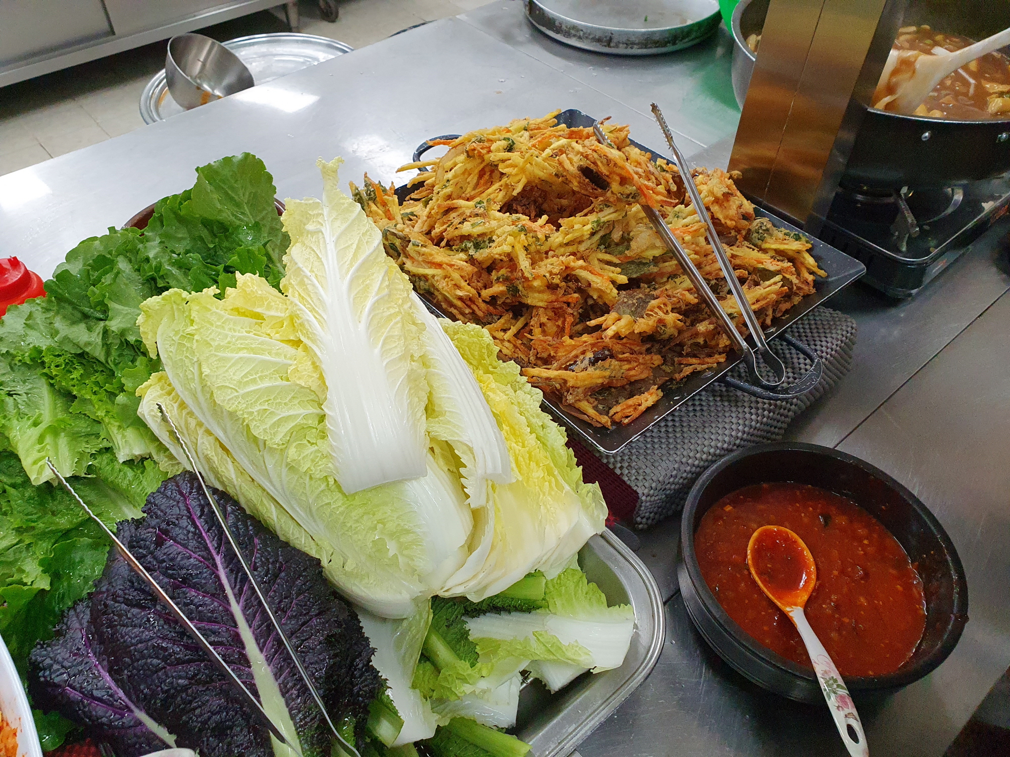 이 집이 높은 점수를 주고 싶었던 것은 역시나 이 쌈이 다양하게 존재를 하고 있었어요. 거의 쌈밥집이라고 해도 무방할 정도로 있다는 것이 너무나 좋았어요. 알싸하게 느낄 수 있는 겨자잎만 봐도 오랜만에 만나서 너무나 반갑게 먹을 수 있어서 너무나 좋았습니다. 이런 느낌으로 먹을 수 있어서 입안에서 춤을 추면서 그냥 이게 행복이지 뭐 더 얼마나 대단한 곳에 갈 수 있을까 하는 생각도 들게 되었습니다.