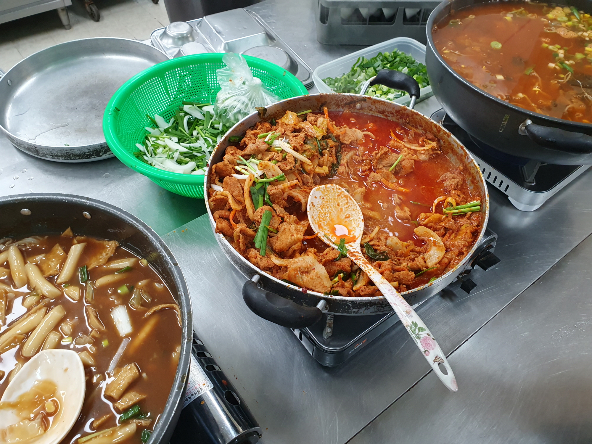 한식뷔페를 먹는 특성상 살펴보면 대부분 매일 재료와 음식이 바뀔 수 있으니 제 사진은 참고를 해주시면 좋을 것 같아요 이렇게 제가 간 날은 제육이 메인으로 나와서 먹을 수 있었어요. 김칫국도 맛있어서 한입 먹자마자 한 그릇 제대로 퍼와야 겠다 생각이 들어서 밥을 먹고 나서 다시 한그릇 제대로 퍼서 왔습니다. 그리고 궁중 떡볶이도 나와서 일반적으로 먹는 떡볶이보다 더 은은하게 달짝지근하면서 먹는 식감을 살려주었어요.