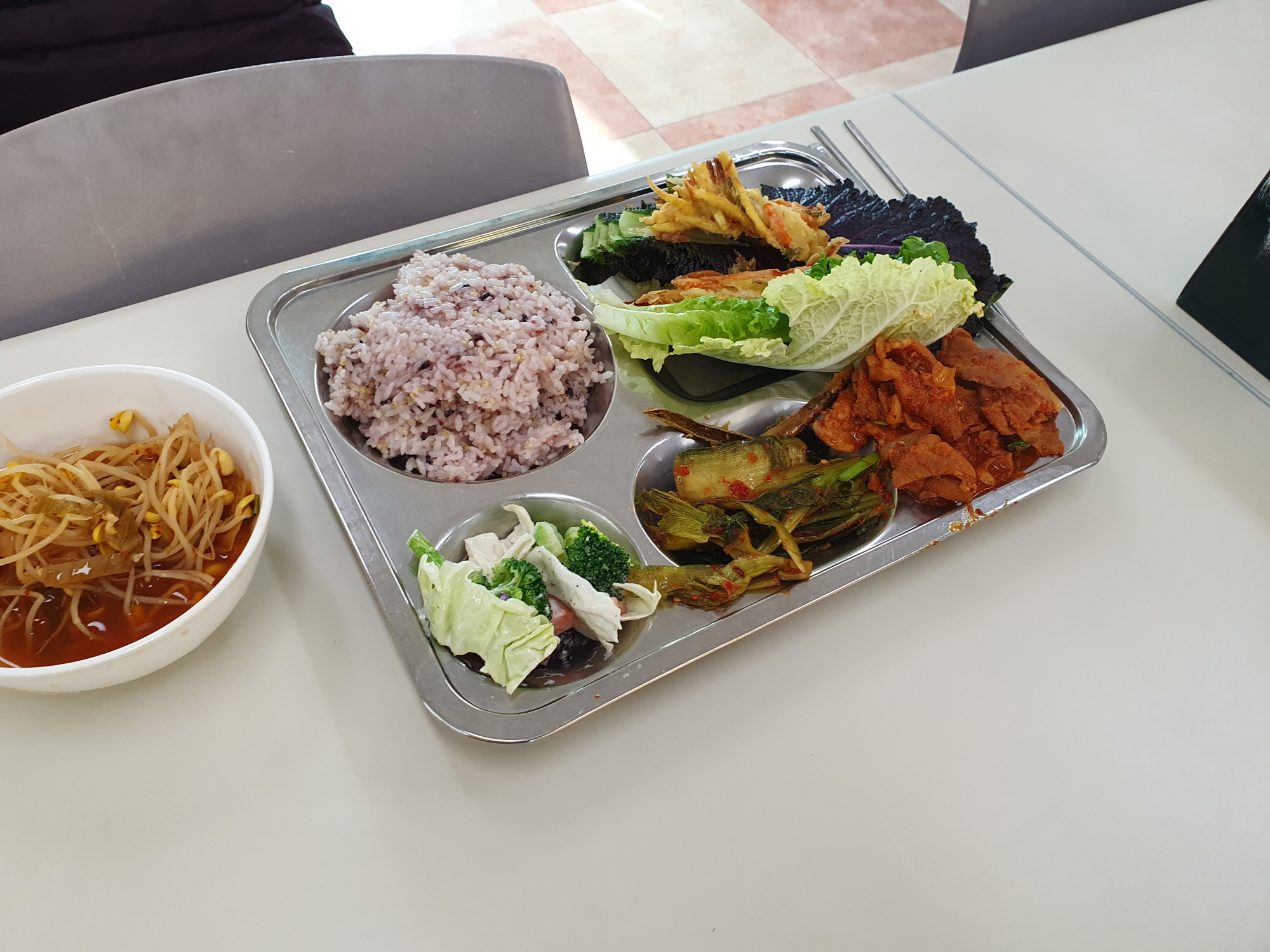 다양한 반찬들이 있는데 사실 사람들이 줄을 서서 먹고 있기 때문에 다시 한번 먹을 수 있을까 초반에는 너무나 걱정을 하기도 했습니다. 하지만 그럴필요가 없었던 것은 한번 줄이 사라지고 다시한번 빈 틈이 생기는 시간이 있기는 하네요. 그래서 한번 먹을 때 많이 담는 것도 좋겠지만 먹을 만큼 여러 번 나누어서 담는 것도 하나의 방법이라고 생각을 해요. 그리고 중간에 소소한 반찬들이 바뀔 수 도 있기 때문에 그리고 잔반을 남기는 것은 환경을 위해서도 피해야할 행동이기 때문에 여러번 나눠서 담는 게 피곤해도 더 좋겠죠.