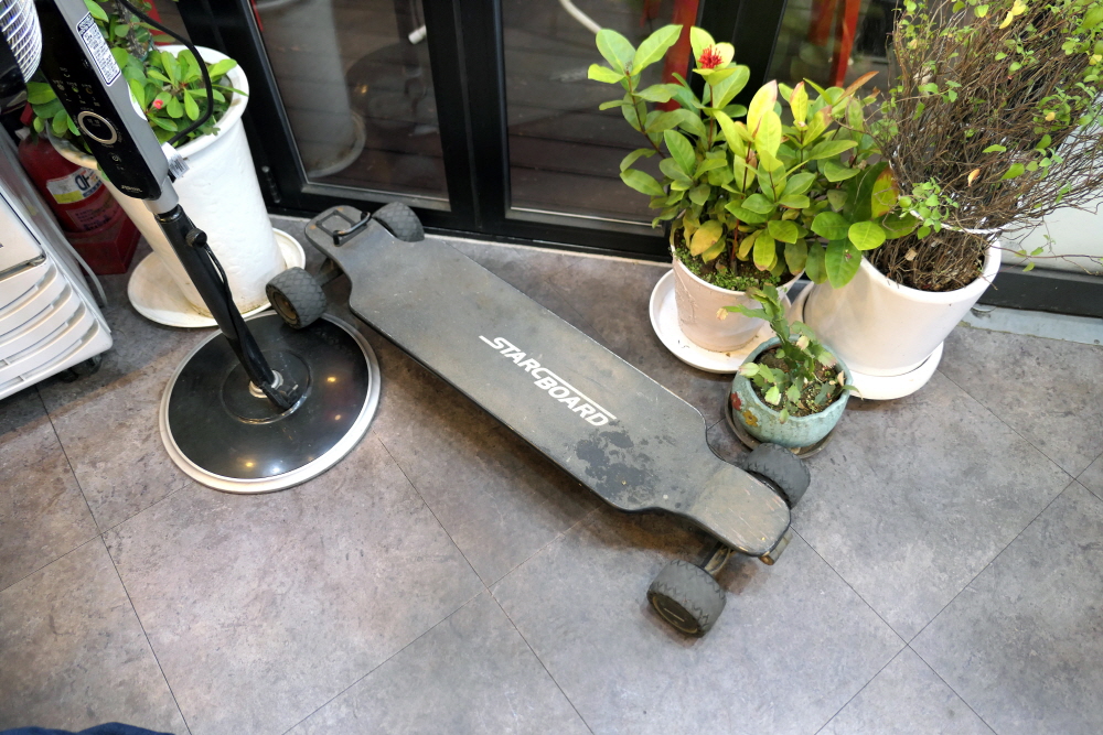 다른 전동 제품에 비해서 가장 큰 장점은 자동차 트렁크에 쉽게 넣을 수 있고, 또 중간에 배터리가 다 떨어지거나 한다면 버스를 타고 다시 집으로 돌아오기도 했습니다. 자전거나 킥보드에 비해서 들고 탄다고 하더라도 아무도 이상하게 보거나 하지 않기 때문에 가볍게 타고 다닐 수 있어서 너무나 좋습니다.