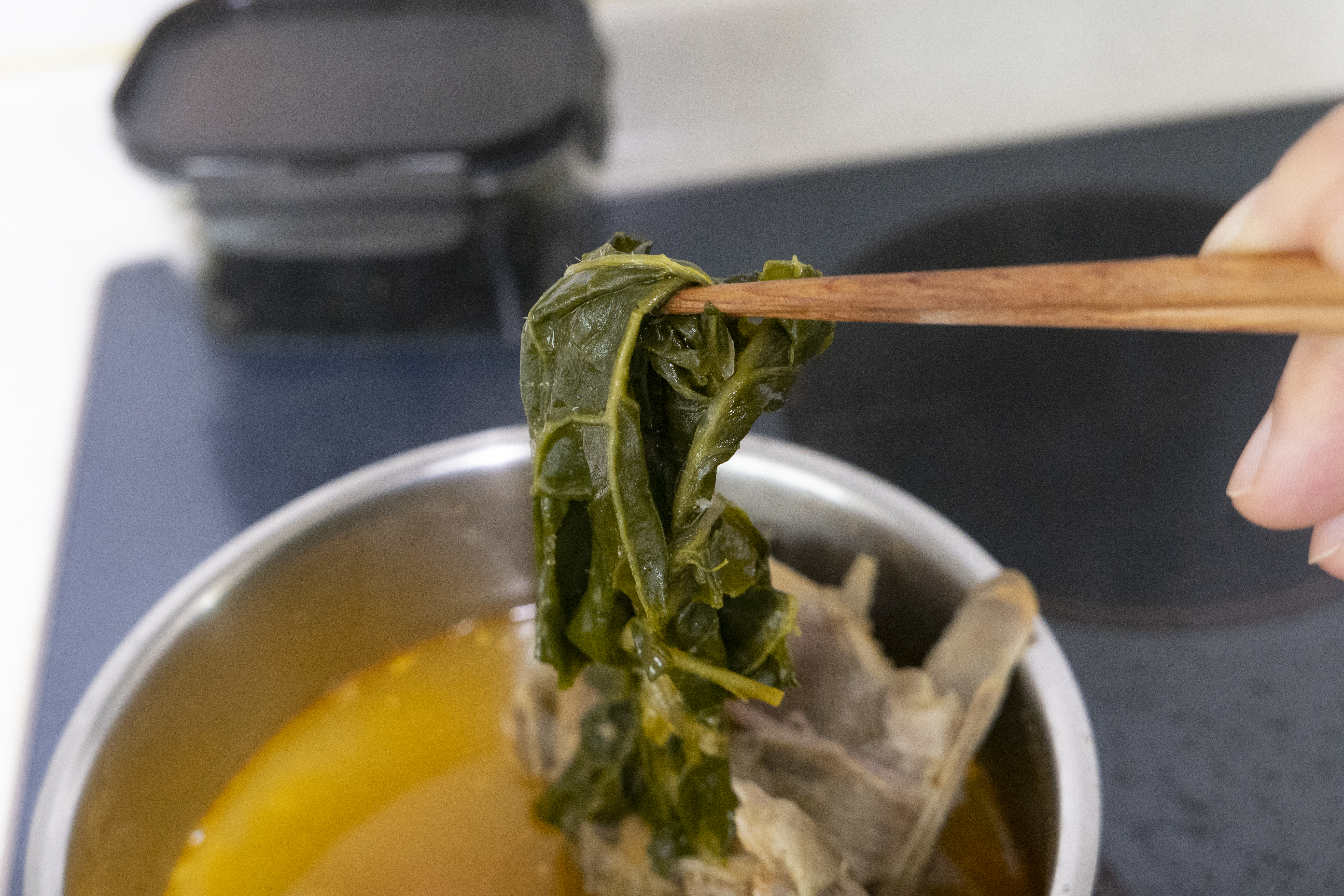 나름대로 우거지도 들어 있다는 것이 너무나 좋다. 이 마저도 없었으면 정말 큰일이 날 뻔하지 않았나 싶을 정도로 우거지가 있어서 다행히 감자탕으로써의 구색은 맞출 수 있었기 때문에 다행이라고 생각을 한다. 다음에 마트에가면 다른 깻잎부터 마늘등 양념할 수 있는 것들을 챙겨두면 더 좋을 것 같다. 다짐은 하지만 꼭 마트를 갔다 오면 생각이 난단 말이지, 그래도 아쉬운 대로 우거지를 넣고 먹을 수 있어서 다행이다. 그리고 항상 사리면을 포함해서 오기는 하는데 한 번도 사리면을 넣어서 먹은 적은 없고 나중에 다른 찌개를 먹을 때 활용을 한다.