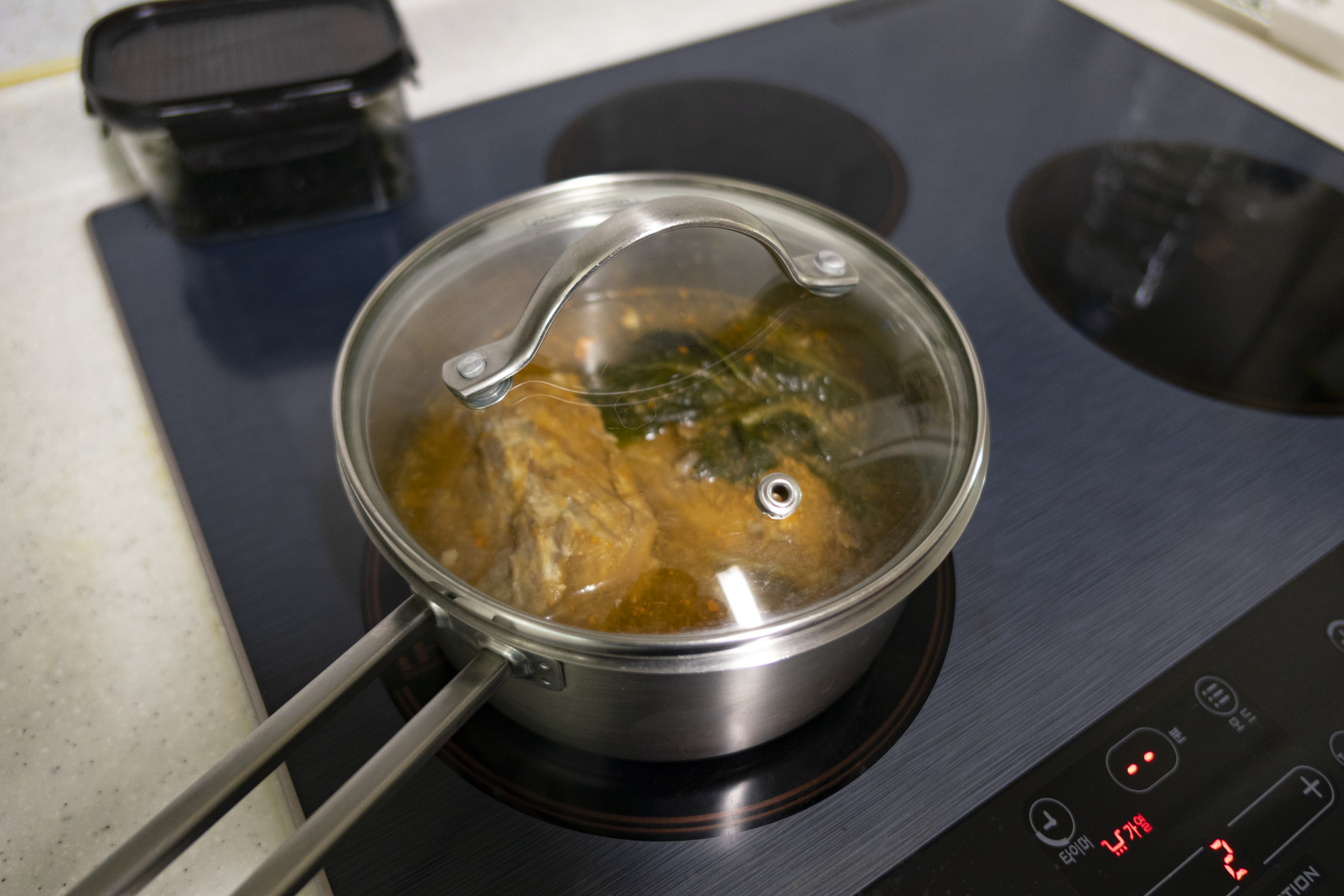 해동이 된 상태에서 약불로 꾸준하게 끓여야 하는 것이 관건이였다. 사실 주문을 했을 때 설명이 있긴 했지만 처음 샀을 때는 그런 것도 모르고 그냥 빨리 먹고 싶은 마음에 센 불로 그대로 큰 냄비에 넣고 팍팍 끓였더니 고기가 엄청 질겨지는 것을 느끼고 나서는 이다음부터는 레시피대로 해야 하는 것이 중요하다는 사실을 깨달았다. 역시 뼈해장국 잘하는 집들은 뭔가 근성이 있어 보이는 것에는 다 이유가 있었다. 약불의 미학으로 천천히 오래 끓이는 것도 중요하기도 했다.