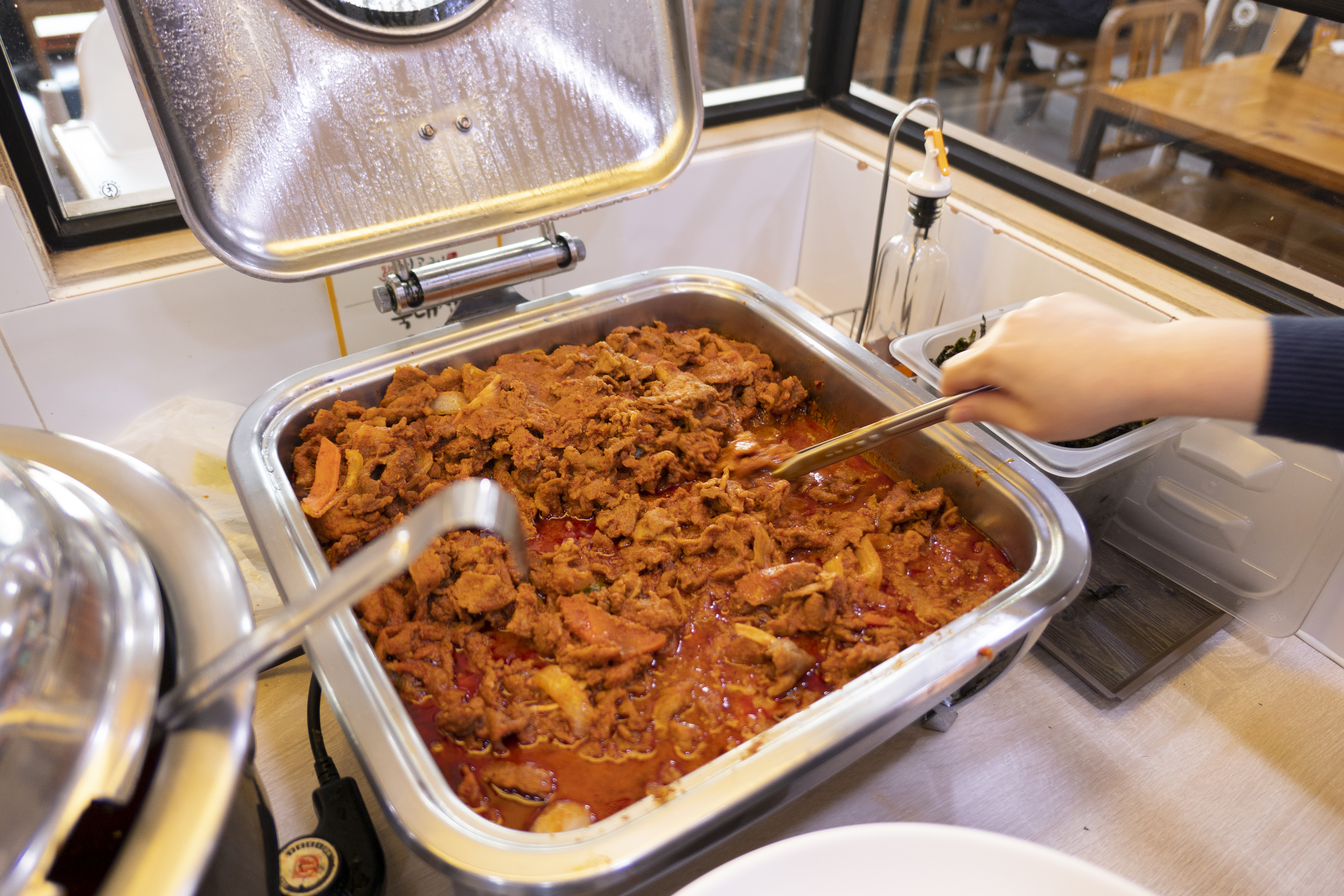 보통의 한식뷔페와 제대로 잘 한다는 집들을 다녀봐도 이 집만큼 제육볶음이 제 입맛에 딱 맞는 집은 없는 것 같습니다. 거의 이거 먹으러 온다고 해도 과언이 아닐 정도로 제윢볶음에 완전 진심이라고 보시면 될 것 같습니다. 이 집의 제육볶음은 매운 편입니다. 육질도 상당하게 괜찮은 편이고 매콤하니 맛있습니다. 매운 것을 잘 못 드시는 분들이라면 아쉬울 수 있을 것 같요. 하지만 매콤한 것을 좋아하시는 분들이라면 더할 나위 없이 맛있는 제육볶음입니다.