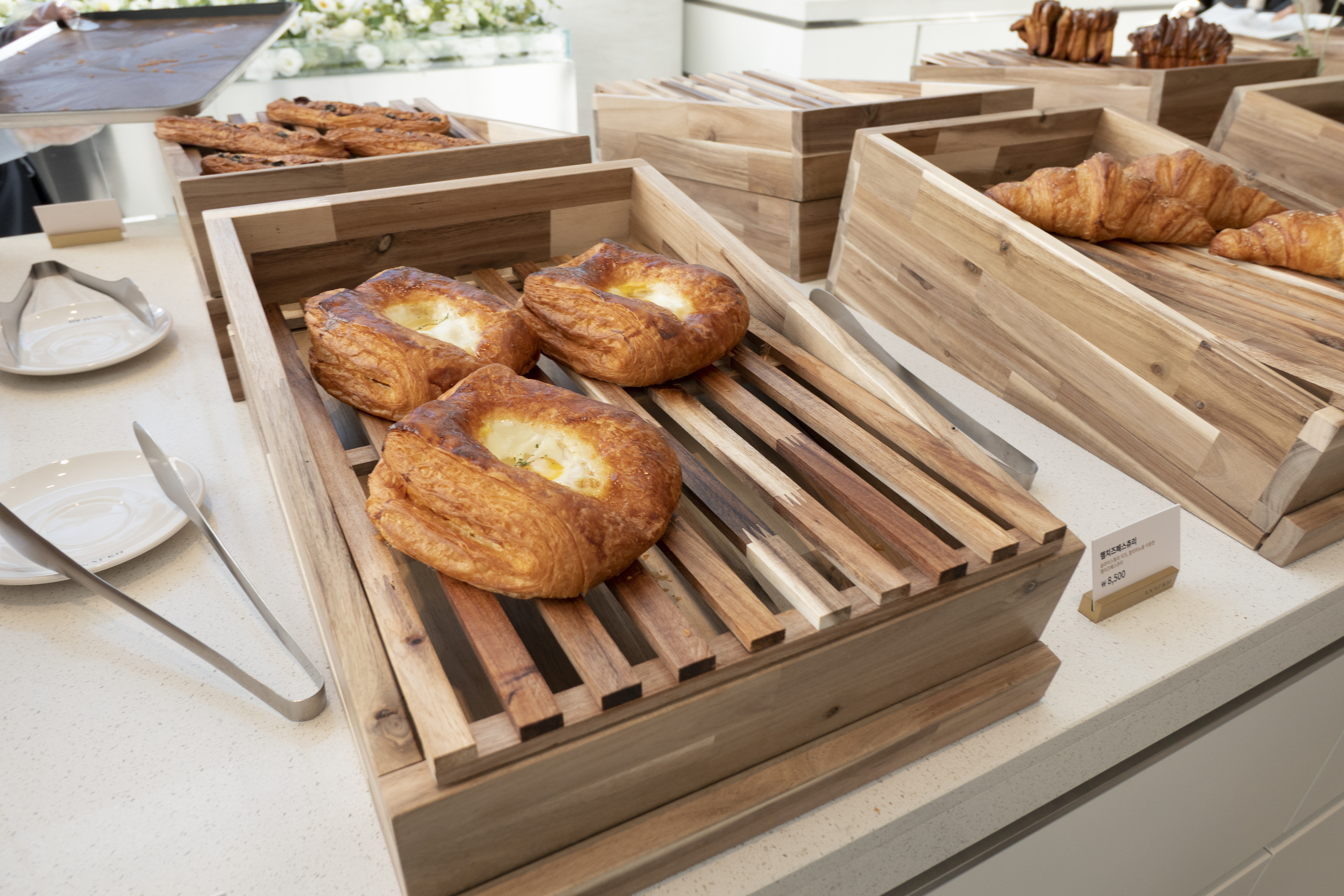 1층에서 빵을 고를 수 있도록 되어 있는데 빵을 좋아하는 나이지만 특별한 것은 없었던 것 같다. 베이커리카페들이 많이 생겨서 그런지 다들 비슷한 느낌이라는 생각이 들었는데 그나마 다행이라고 느낄 수 있는 것은 내가 갔을 때 막 빵들이 채워지고 있는 시간이라서 그런지 따뜻한 느낌이 들었다. 베이커리카페니까 빵이 나오는 시간에 맞춰서 가면 더 좋을 것 같다라는 생각이 든다.