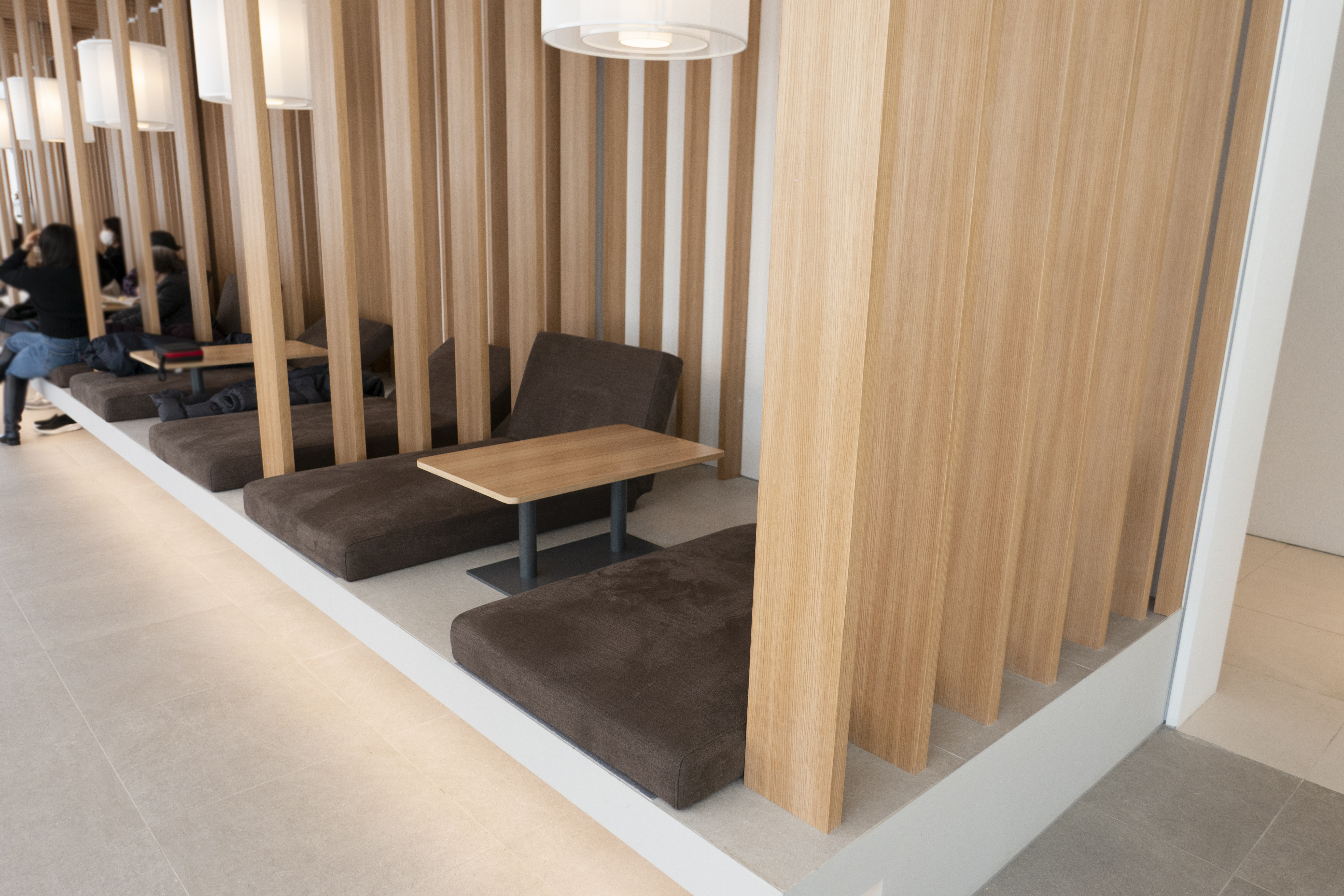 1층에도 상당하게 많은 자리가 있었다. 어르신들도 많이 오고 가족단위로도 오는 사람들이 상당하게 많이 있는 듯 했다. 아이들도 어느 정도 공간의 제약이 있는 곳에서 다니는 것보다는 이렇게 개방감이 높은 곳에서 음료를 즐기는 것이 더 좋기는 하겠다 싶기는 했다. 공간과 자리가 적절하게 있기 때문에 현대적인 기분이 들어서 마음에 들었다. 단체로 즐기는 것에도 문제는 없어 보이기는 했다.