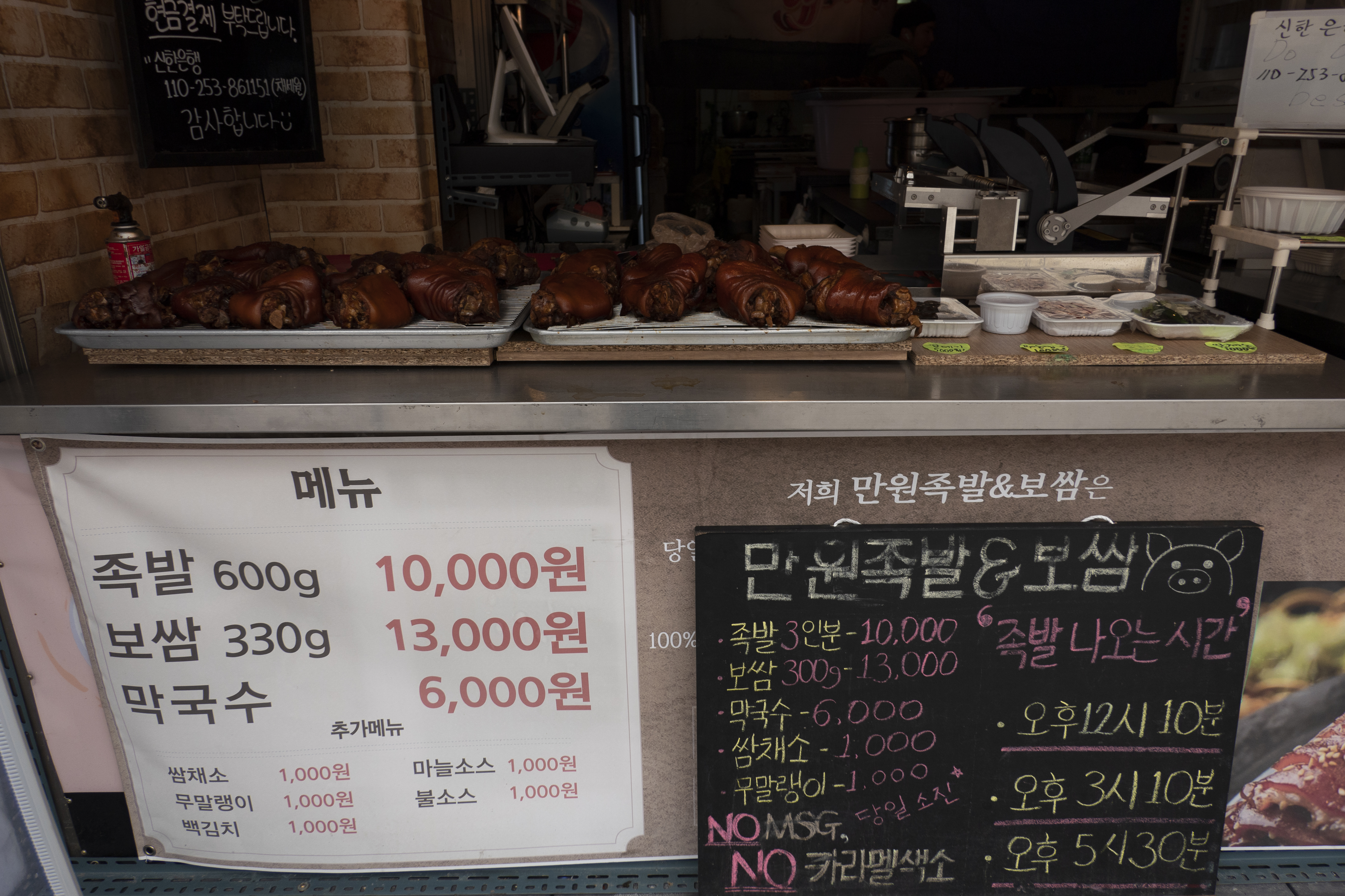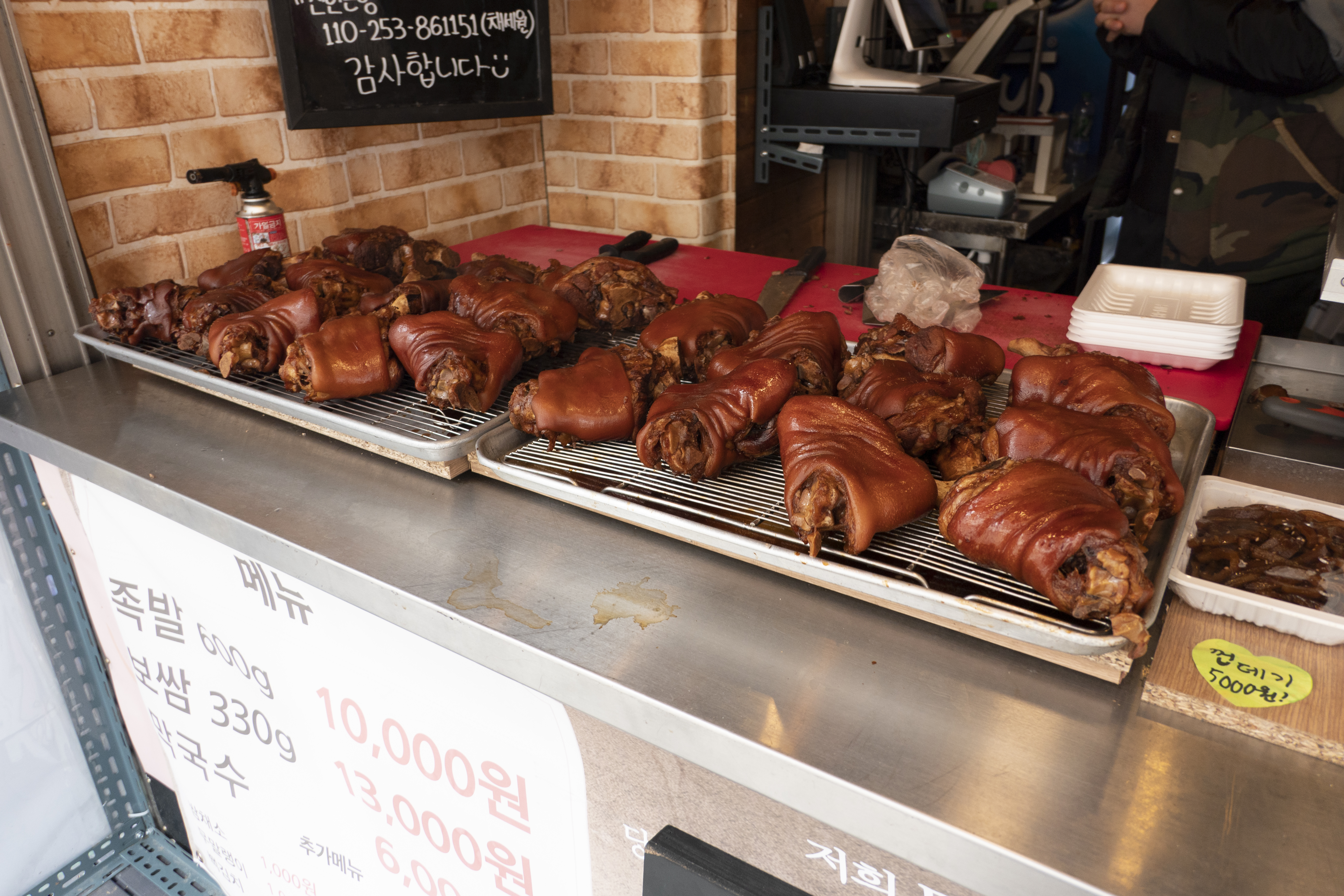 입구에 들어서자 따끈따끈하게 잘 나와 있는 족발들이 보입니다. 안 그래도 족발이라고 한다면 너무나 좋아하는 사람인데 눈앞에서 보니까 더욱 맛깔스럽게 느껴지는 것 같습니다. 가격적으로 상당하게 매력이 있기 때문에 족발을 부담 없이 먹을 수 있다는 것이 가장 큰 매력 중에 하나가 아닐까 생각을 합니다. 가격만 놓고 보면 거의 이제는 치킨보다 저렴하다고 할 수 있는 부분이기 대문에 반갑게 먹어줍니다.