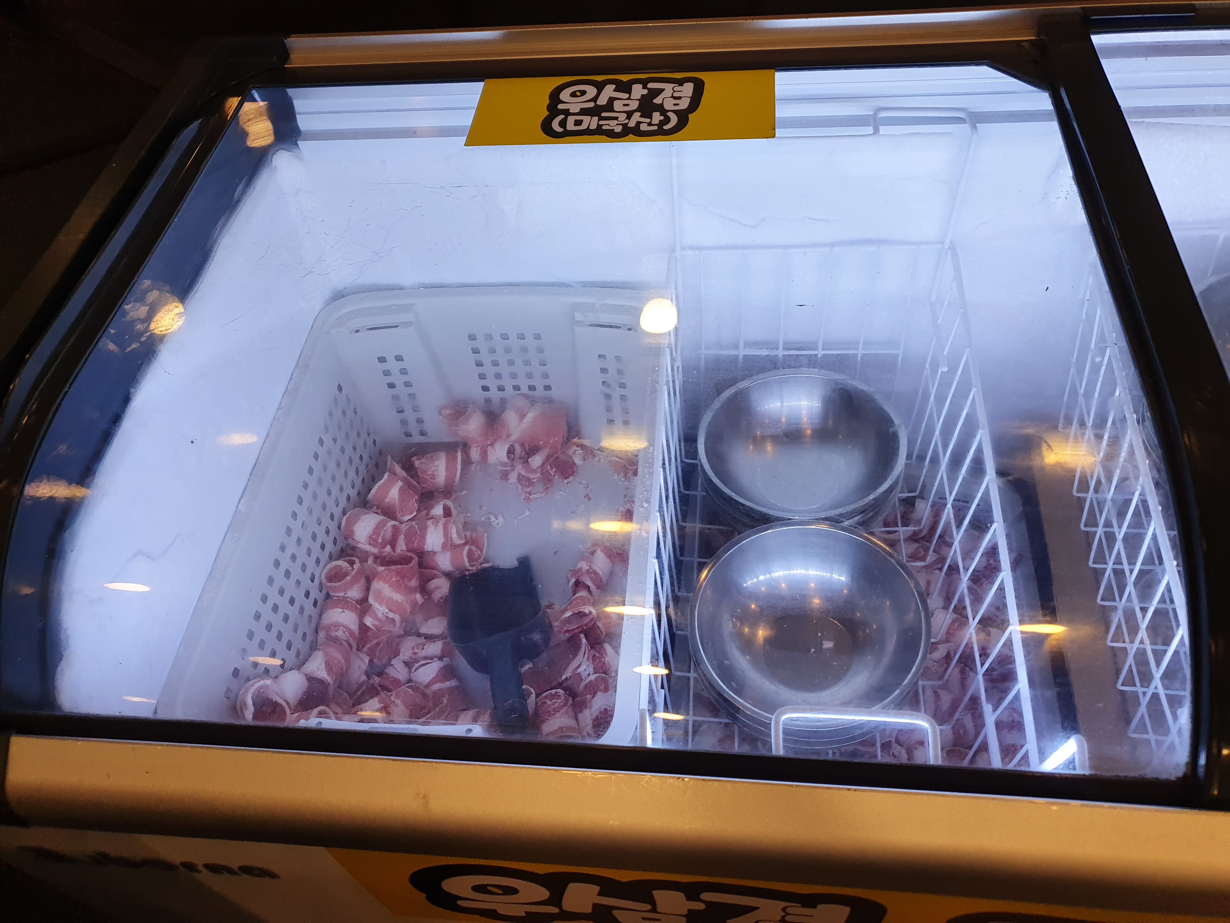여기에 우삼겹과 대패삼겹이 냉동고에 쌓여있다. 개인적인 취향이기는 하지만 이것만 계속 실컷 먹어도 왠만큼 가성비는 나오지 않는가 하는 생각이 든다. 원래 두꺼운 고기 먹기 전에 얇은 고기로 입가심을 하기 좋긴 한데 그냥 이것만 먹어도 왠지 마음에 든다.