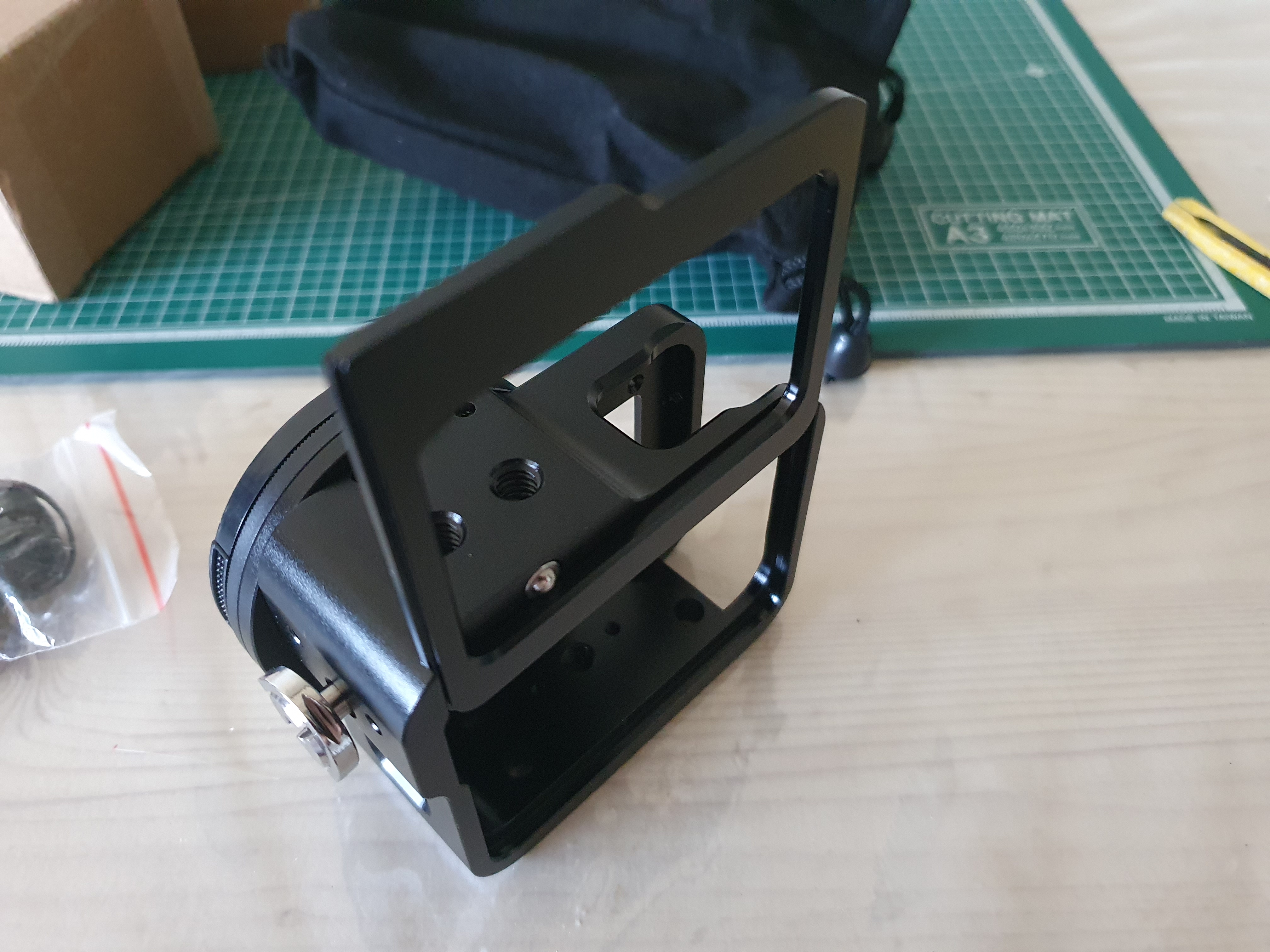 여러부분에 1/4 일반적인 카메라 홀들이 많이 있어서 다양하게 장착을 해서 쓸 수 있다. 세로로 끼워서 사용을 하는 것도 편리함중에 하나이다. (개인적인 생각이지만 저렴한 액션캠들은 흔히 이 홀을 장착하는데... 그게 더 편한 것 같다. 진짜 액션을 하는 사람들에게는 불안하겠지만)
