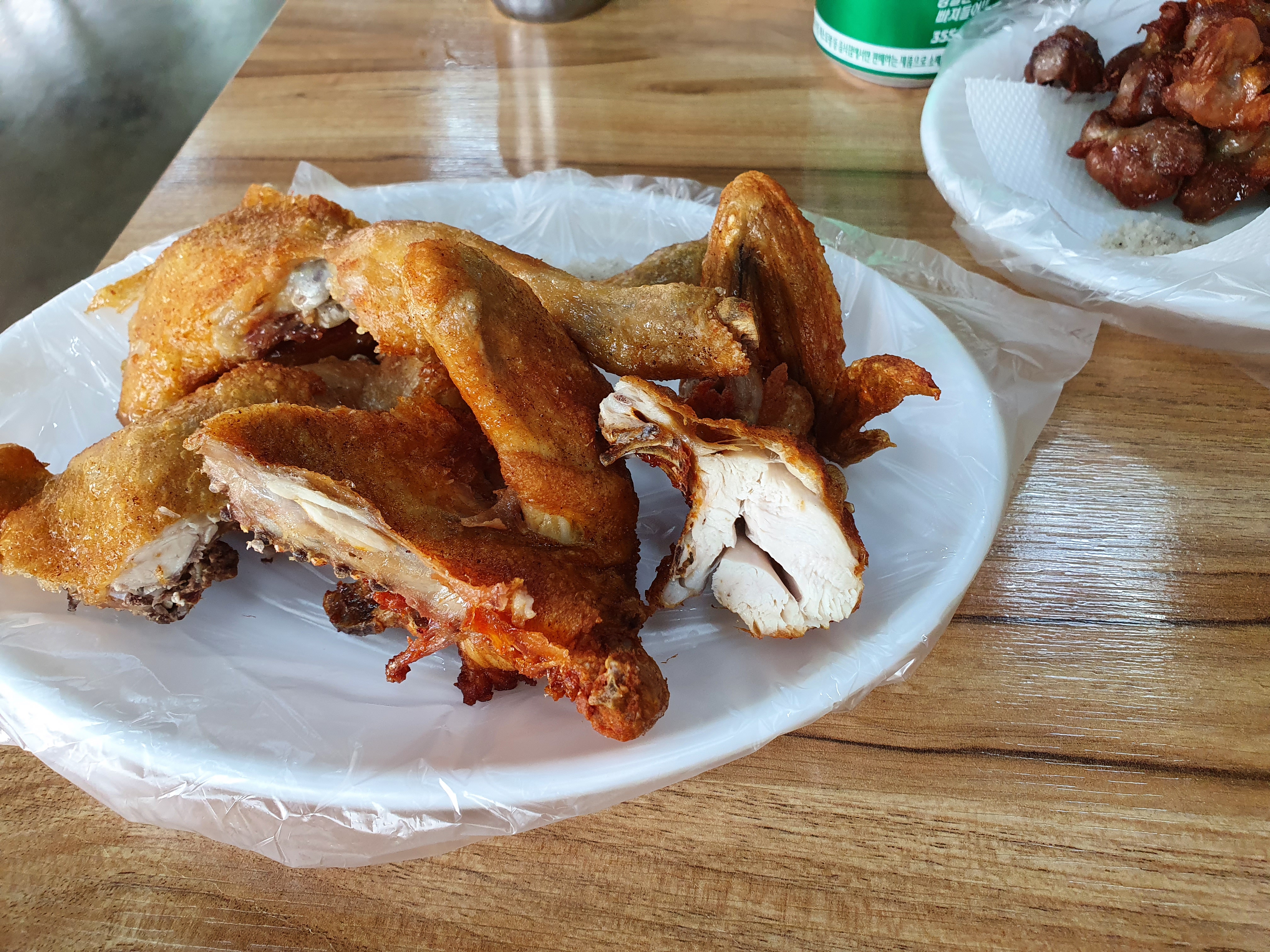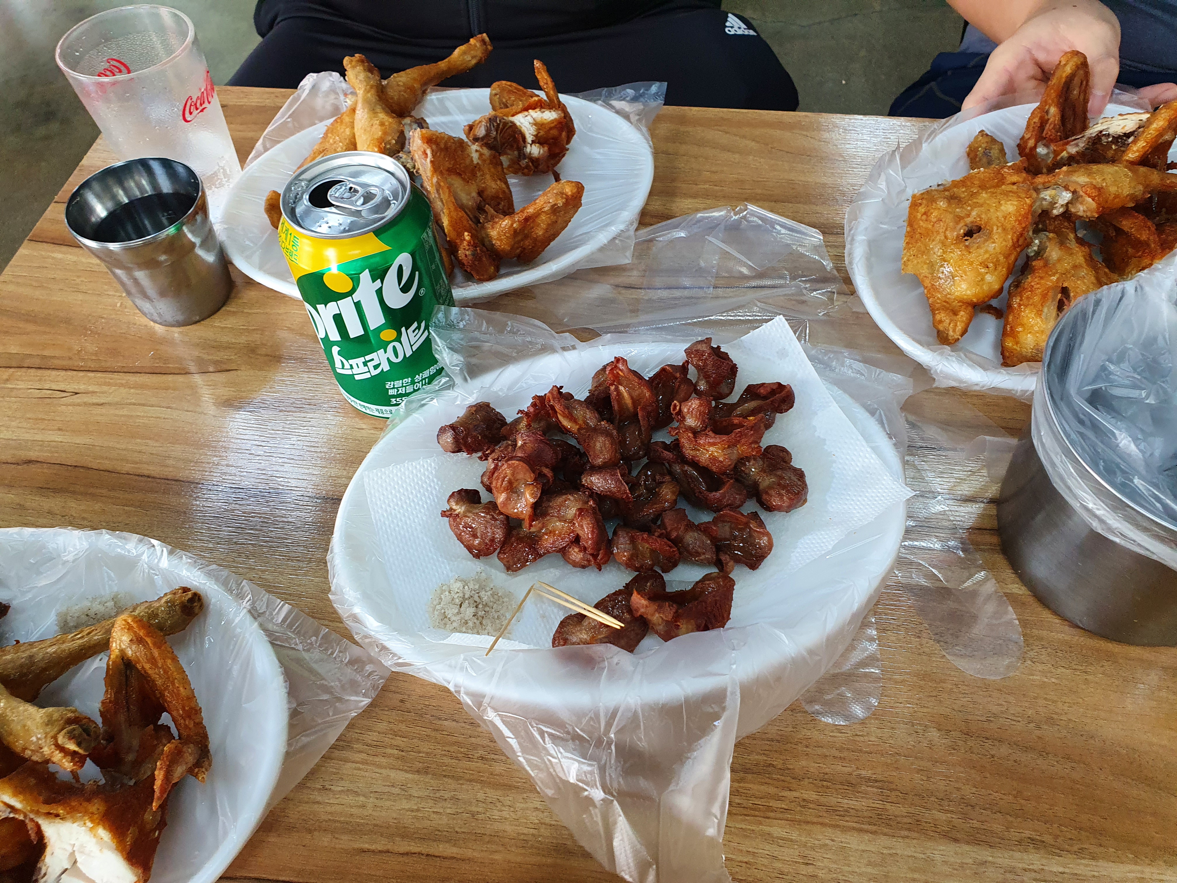 이날은 친구 2명과 함께 총 3명이서 갔거든요. 그래서 3마리와 함께 닭똥집도 하나 추가로 주문을 했거든요. 이런 잘 나왔다고 생각을 합니다. 닭의 크기는 살짝 작은 크기라고 볼 수 있는데요 저는 일단 큰 닭을 그렇게 좋아하는 편은 아니라서 오히려 마음에 듭니다.