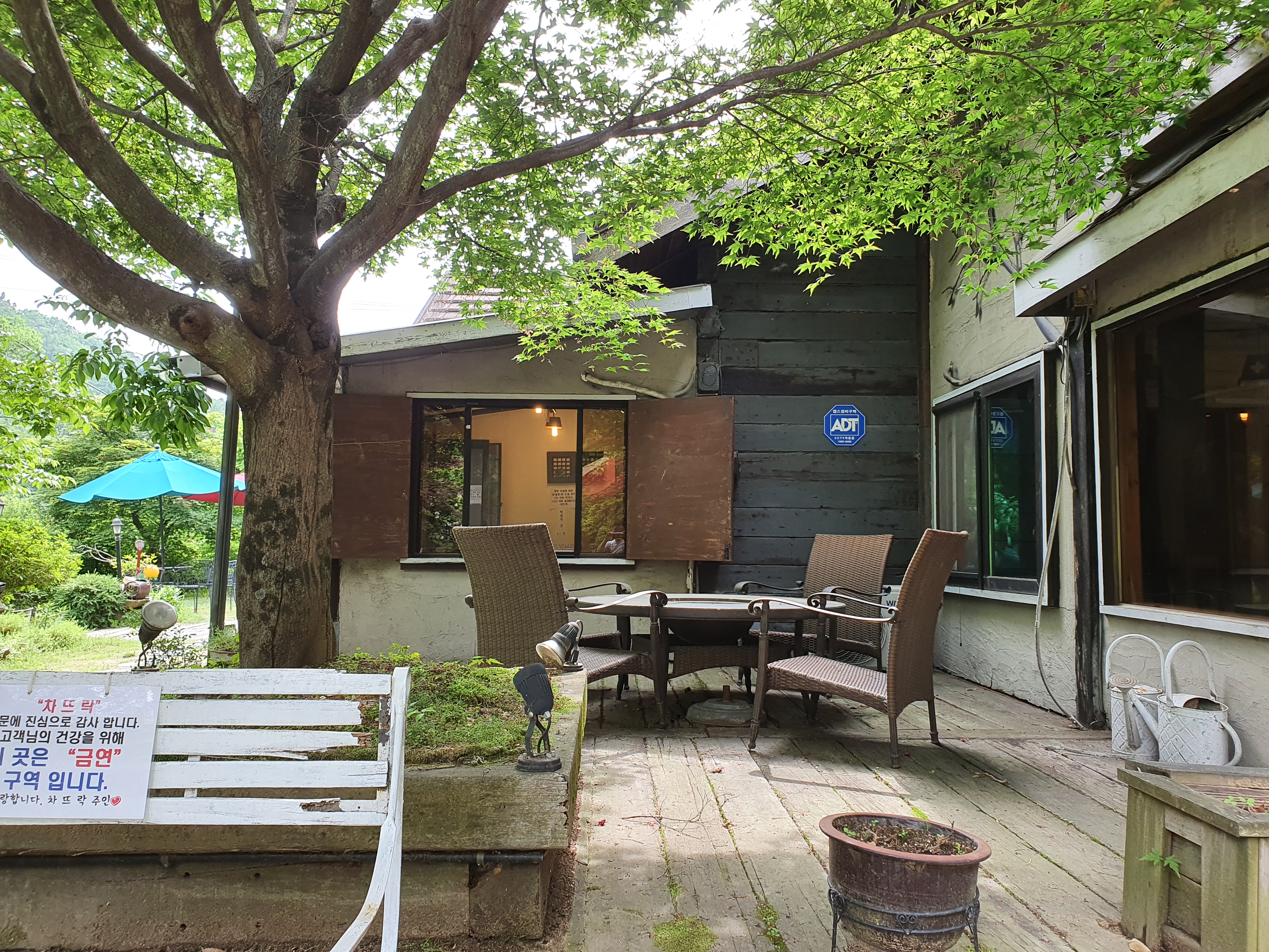 야외 테이블도 그렇게 많은 편은 아니고 방이랑 다 합쳐서 10개정도 있는 것 같은데 거리가 큼직하고 조용하게 담소를 나누기에도 적당한 것 같습니다. 산속으로 힐링을 하고 싶다 생각이 들면 얼른 차를 몰고 가면 금방 도착을 하고 괜찮은 경치입니다.