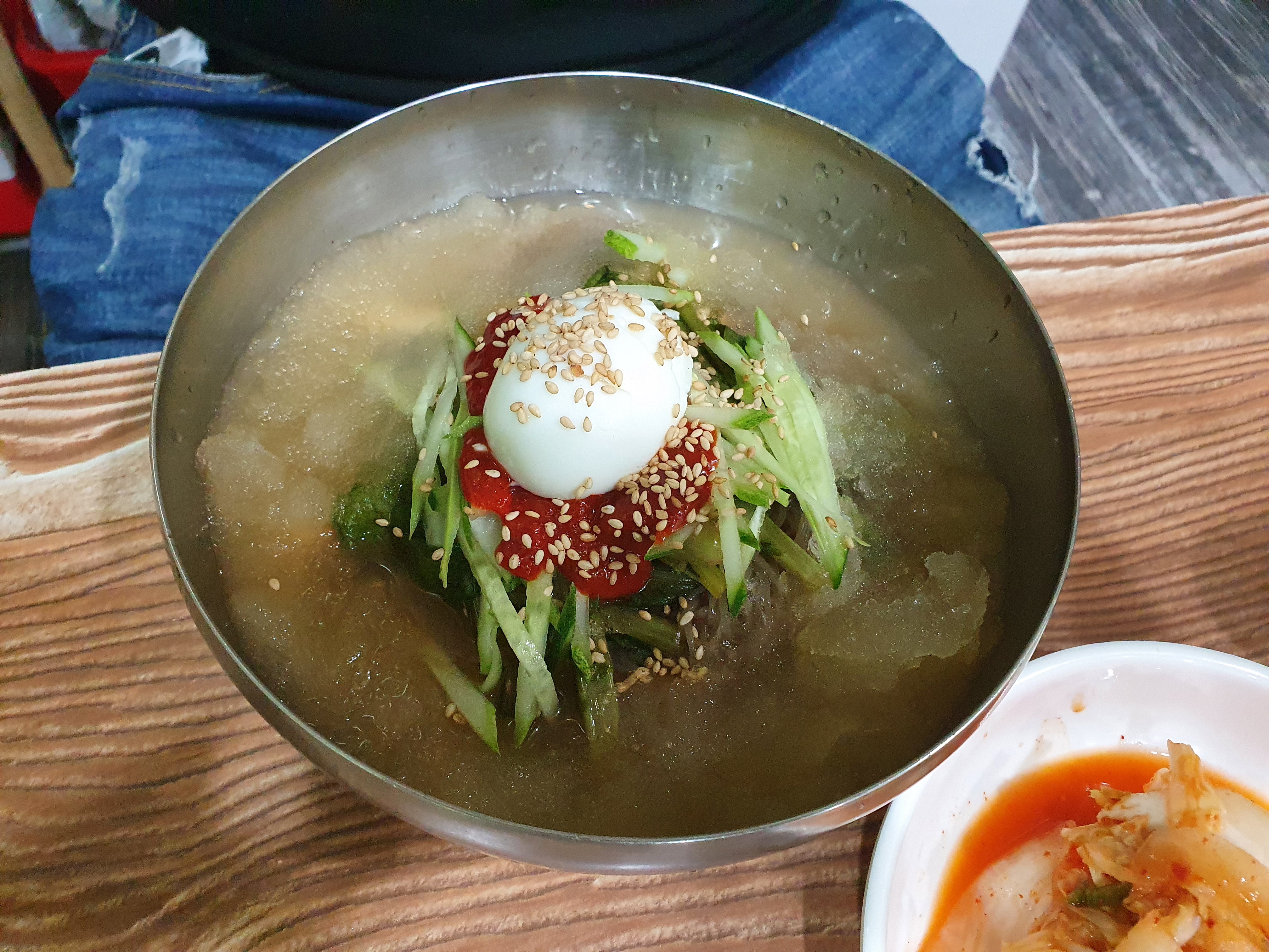 이것이 열무냉면이다. 5천원을 하고 있으며 시원한 살얼음이 함께 해서 나오는 집이다. 사실 살얼음까지는 기대를 하지 않았지만 시원하게 먹을 수 있다는 장점을 가지고 있어서 좋았다. 음 시원한 열무와 살얼음 육수 이정도면 충분히 괜찮다고 생각을 한다.