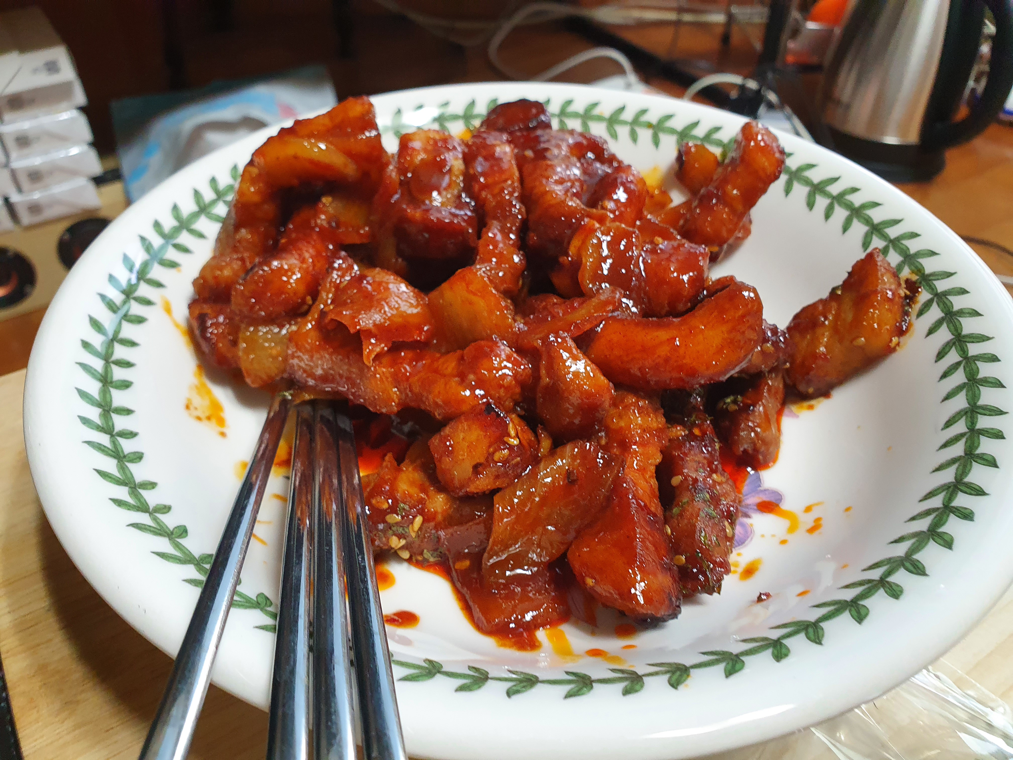 이 집만의 매력이라고 한다면 역시 고추장삼겹살 자글자글 하면서도 쌈싸먹기 좋게 잘 해놓은 것이 특징이네요 그리고 무엇보다 집에서 삼겹살 먹기도 귀찮고 혼자 집에서 삼겹살을 먹고 싶다고 느낄 때 딱 선택을 하기 좋은 최고의 선택지 바로 배달이지요.