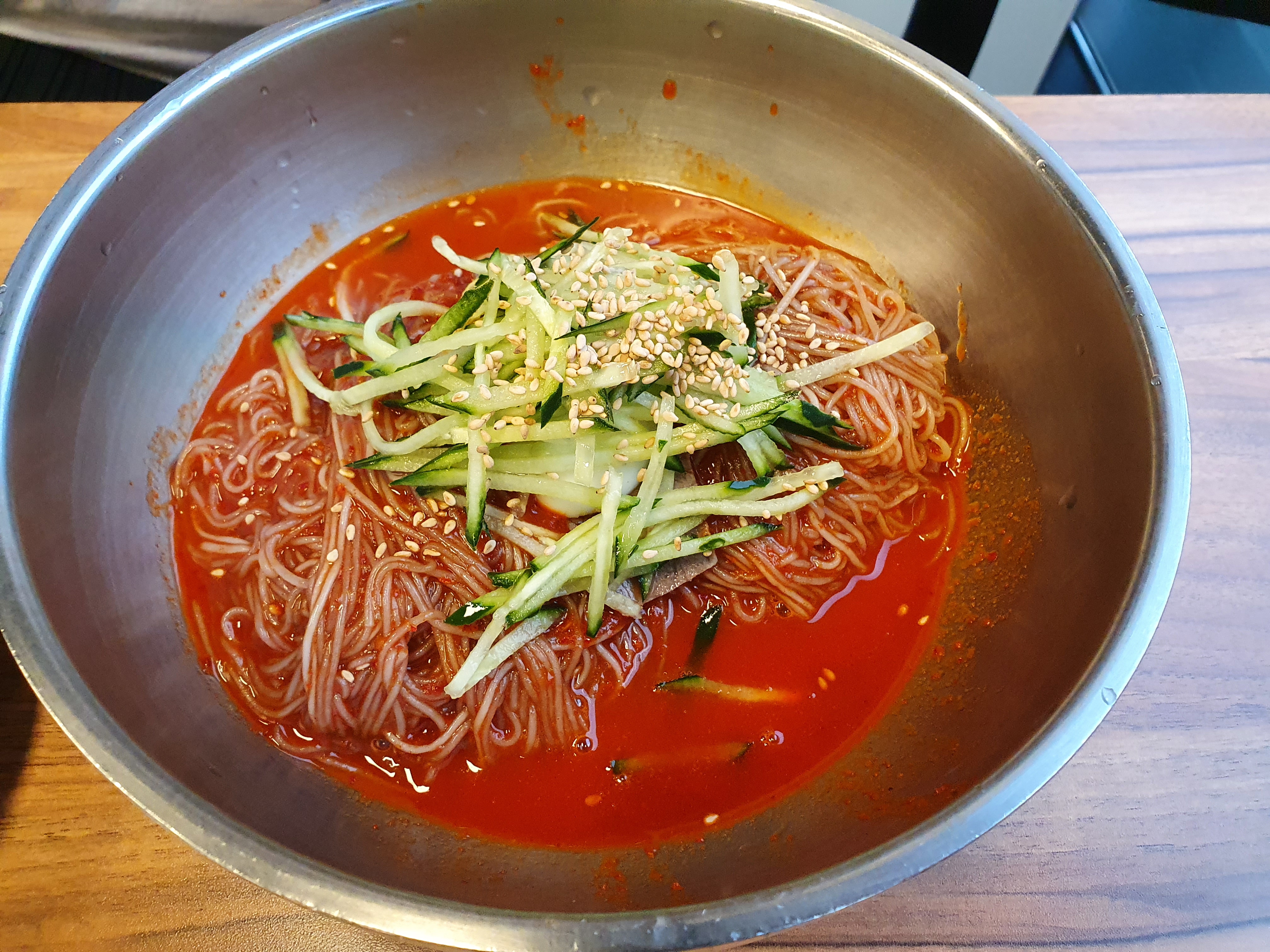 비빔은 소스는 맛있다. 은근히 계속 땡기게 하는 그런 맛이다. 맵거나 하지는 않았는데 입안에서 촥촥 감칠맛 돌게 감기는 그런 소스였다. 대신 면은 질기다. 다음에 가게 되서 먹는다면 평양냉면이나 회냉면을 먹어야 할 것 같다. 내가 너무 어린이 입맛이라서 그런 것일 수도 있기는 한데 뭐 그런 것 같다.