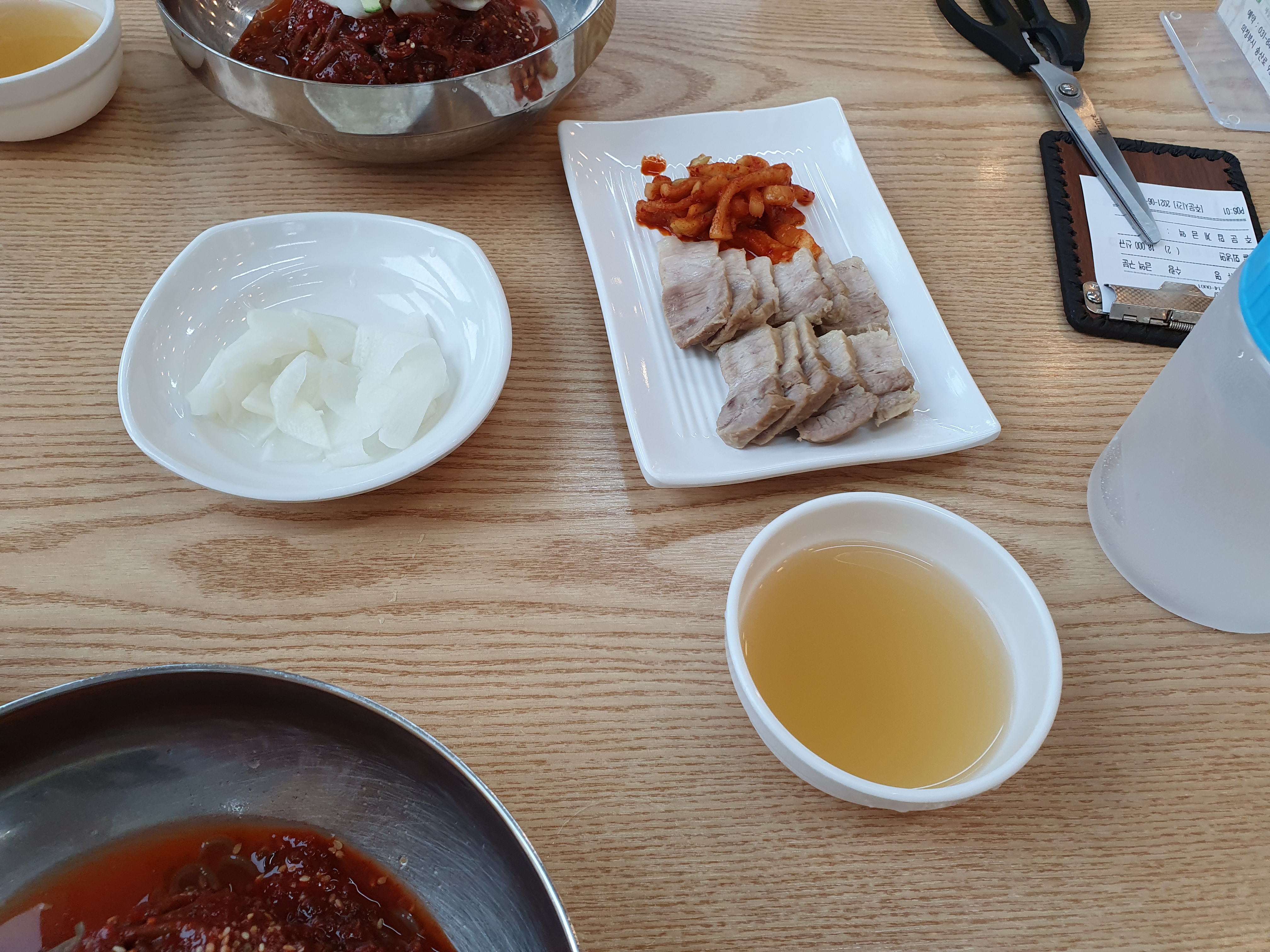 고기의 퀼리티는 보통 무난했다. 질기거나 하지는 않았고 잘 삶은 듯 한 느낌이 좋았다. 뷔페에 가면 가끔씩 먹는 그런 종류의 보쌈수준이였는데 냄새가 나거나 하지 않았고 함께 나오는 무도 같이 먹기에 좋았다. 물론 냉면과 함께 먹기에도 더 좋았던 느낌이다.
