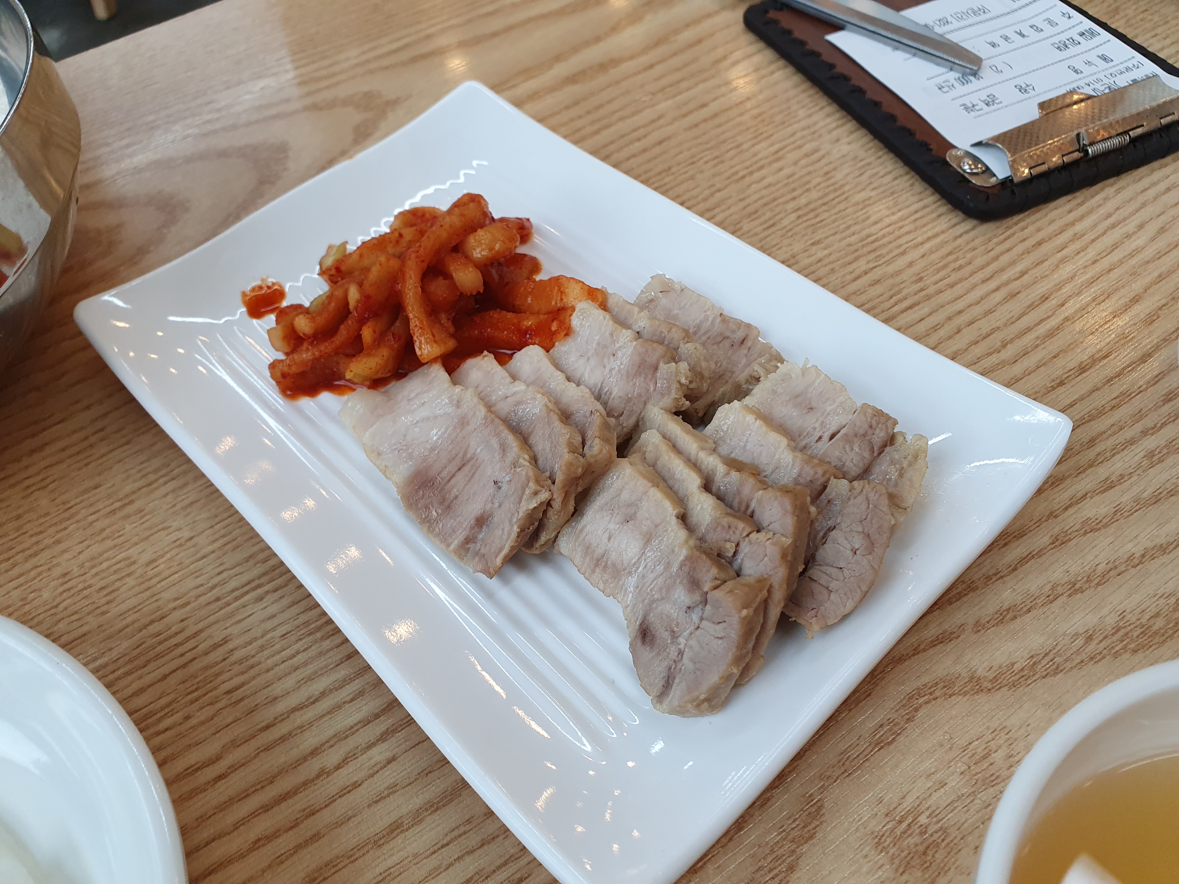 고기의 퀼리티는 보통 무난했다. 질기거나 하지는 않았고 잘 삶은 듯 한 느낌이 좋았다. 뷔페에 가면 가끔씩 먹는 그런 종류의 보쌈수준이였는데 냄새가 나거나 하지 않았고 함께 나오는 무도 같이 먹기에 좋았다. 물론 냉면과 함께 먹기에도 더 좋았던 느낌이다.