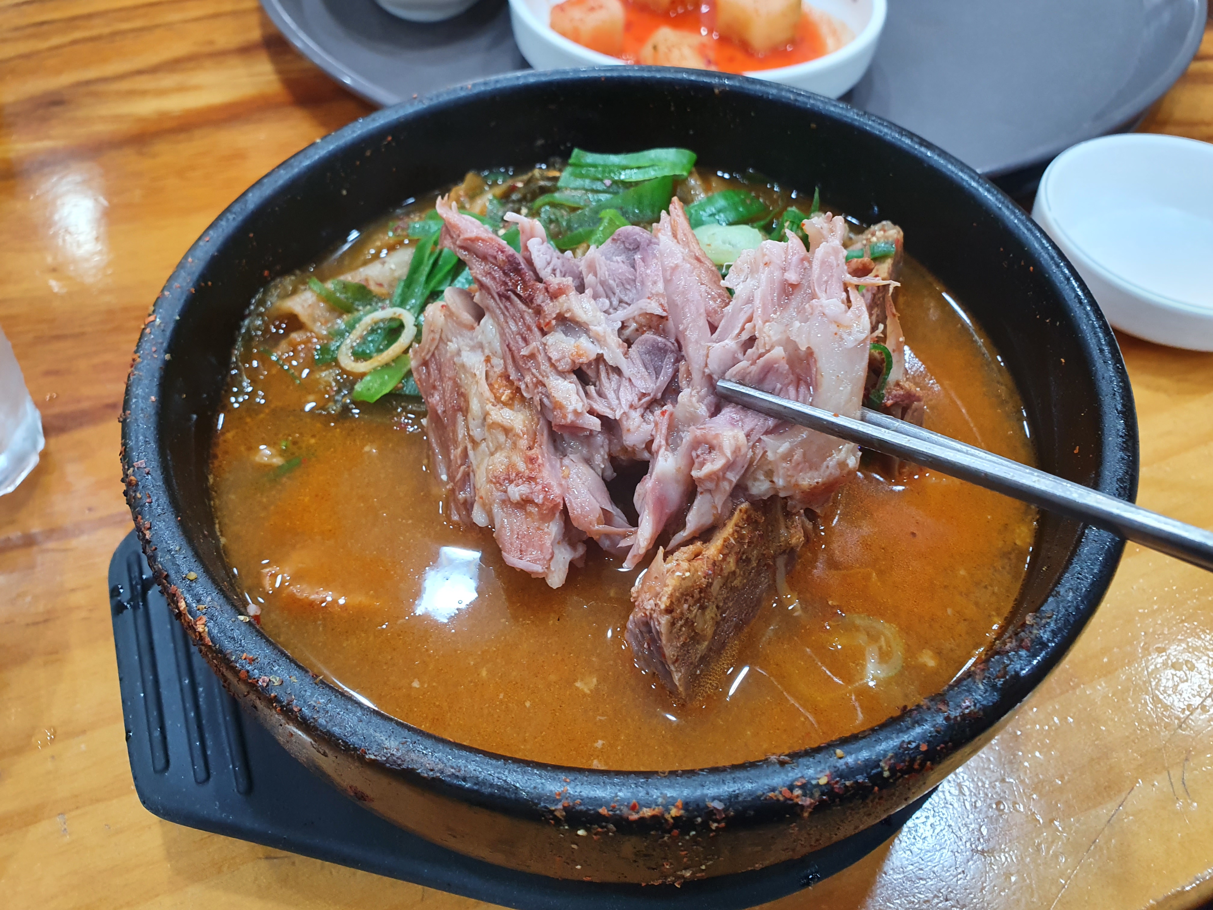 고기가 상당히 부드럽습니다. 살며시 부스러지는 정도로 푹 끓이고 나오는 뼈입니다. 여기는 국내산이라는 장점을 가지고 있어서 정말 혜자가 아닐까 싶기도 합니다. 그리고 고기 사이즈도 작은 편은 아니라서 큰 두덩어리가 들어가는데 씹을 수록 고소한 고기가 인상적입니다.
